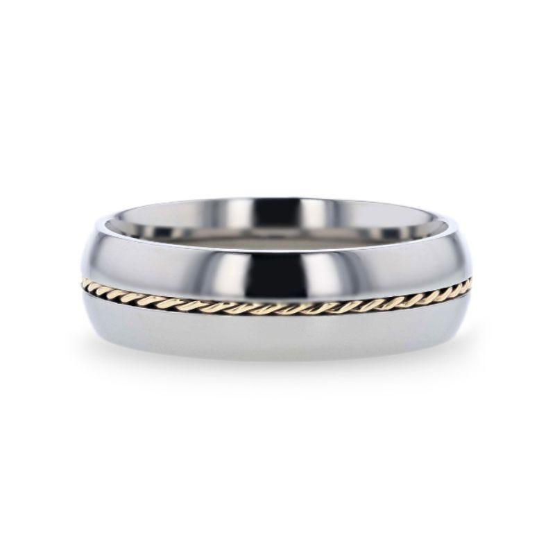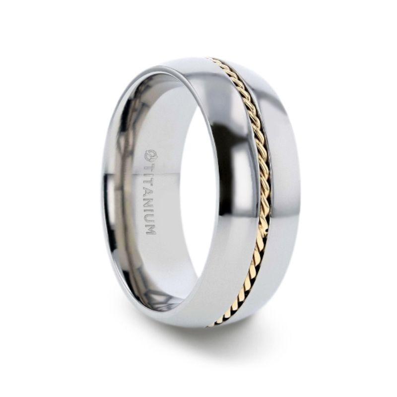 CHRISTIAN Titanium Domed Polished Men 's Wedding Ring With 14k Yellow Gold Braided Inlay - 8mm