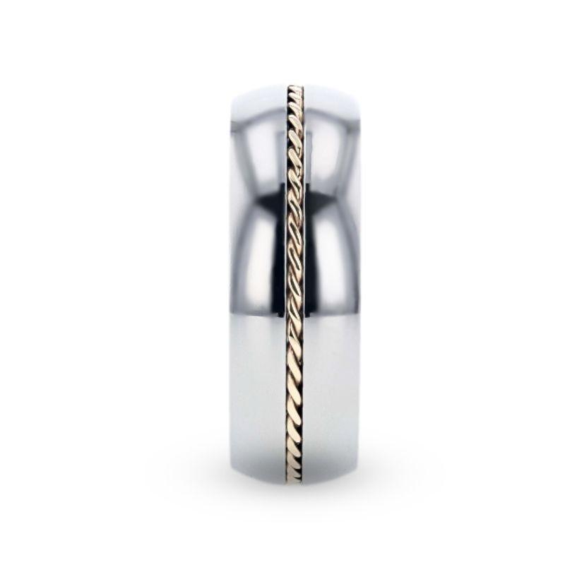 CHRISTIAN Titanium Domed Polished Men’s Wedding Ring with 14k Yellow Gold Braided Inlay - 8mm