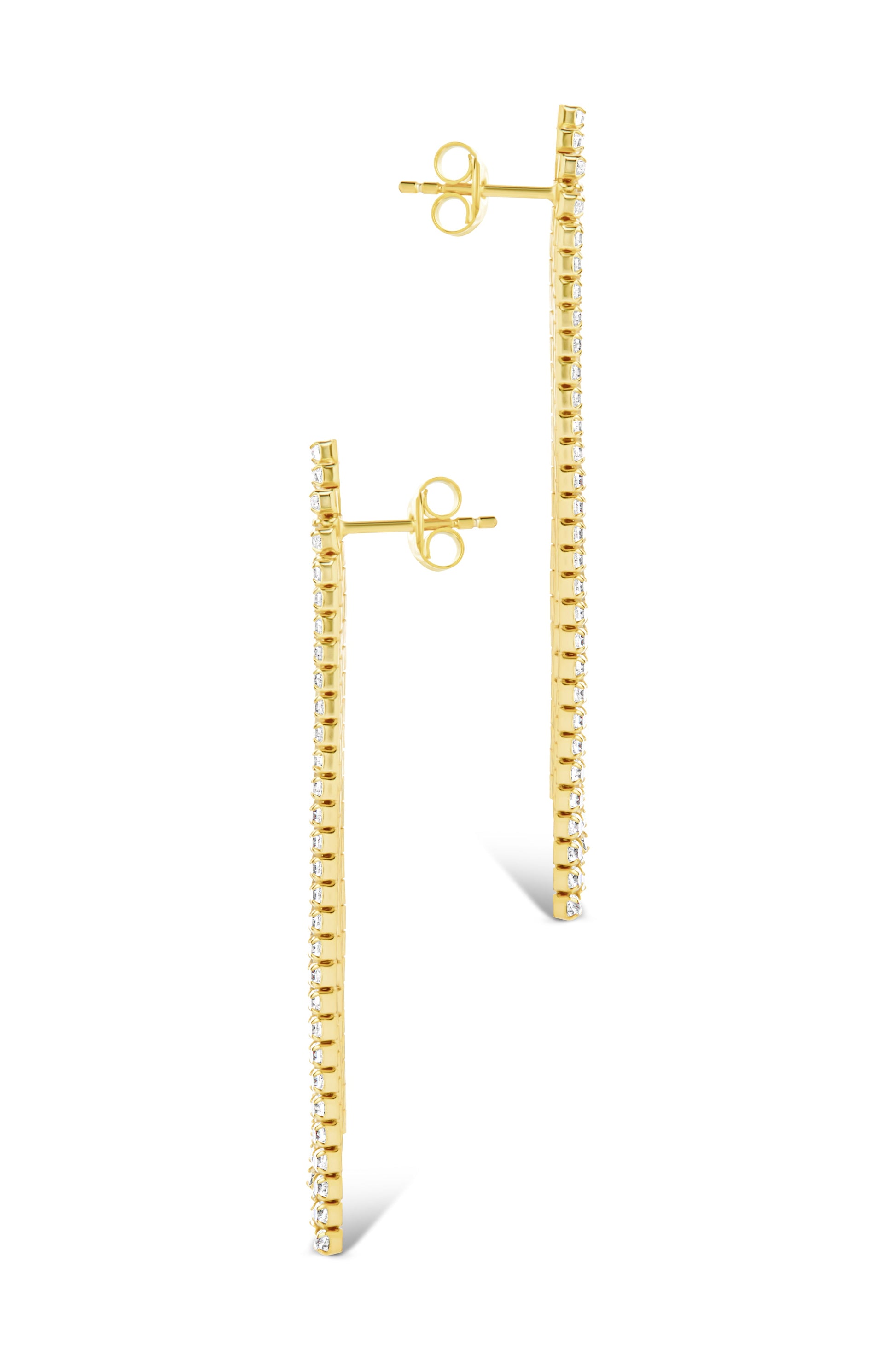 Dazzle and delight with our Clara CZ Dangle Stud Earrings. These sophisticated earrings feature five rows of sparkling CZ studs, perfect for adding a touch of luxury to any outfit. Elevate your style with this exclusive and elegant accessory.