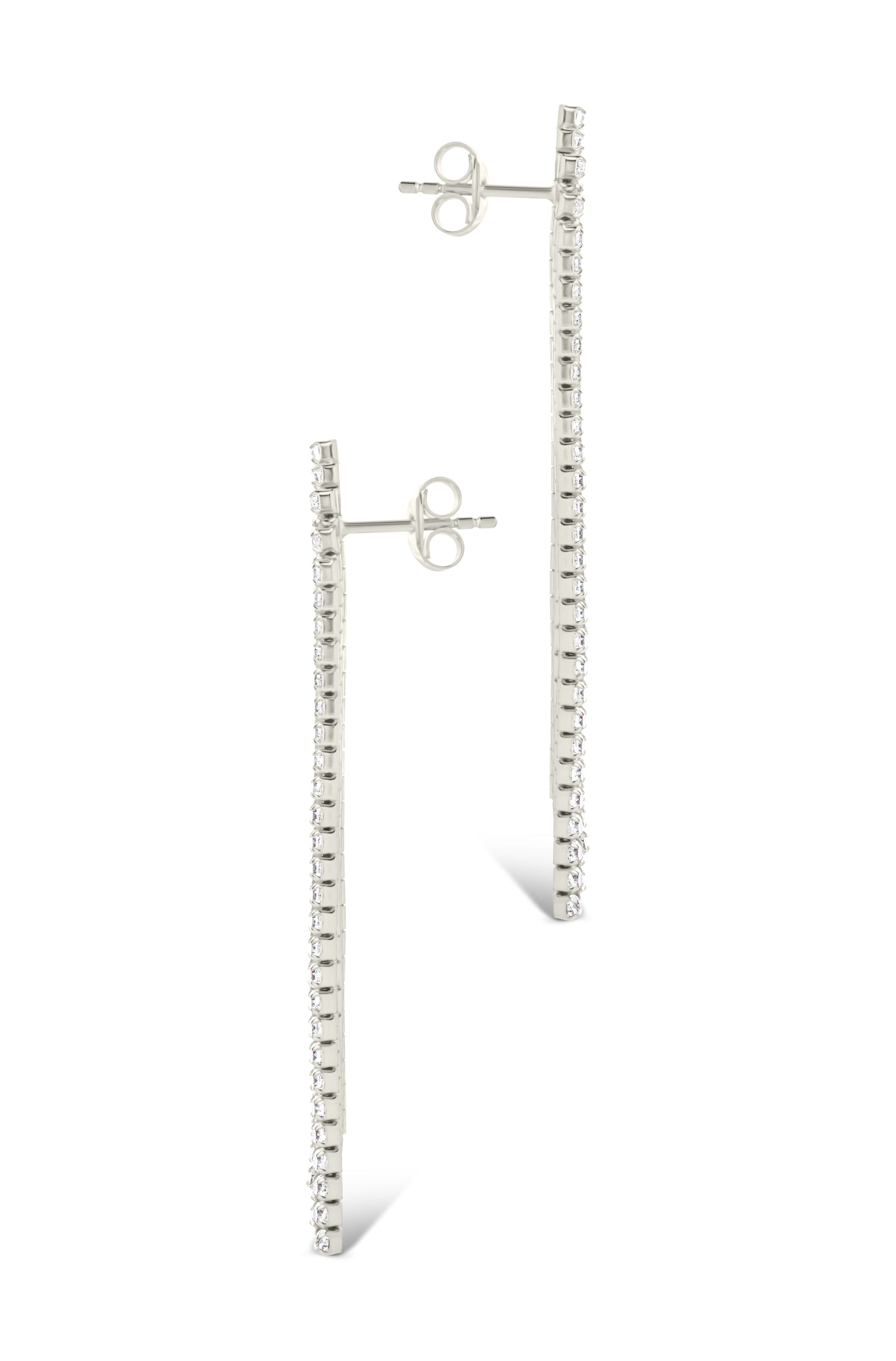 Features: Earrings is 1.75 in, with graduated waterfall dangle, 2 mm round prong set cz stones, post backing, lead and nickel free