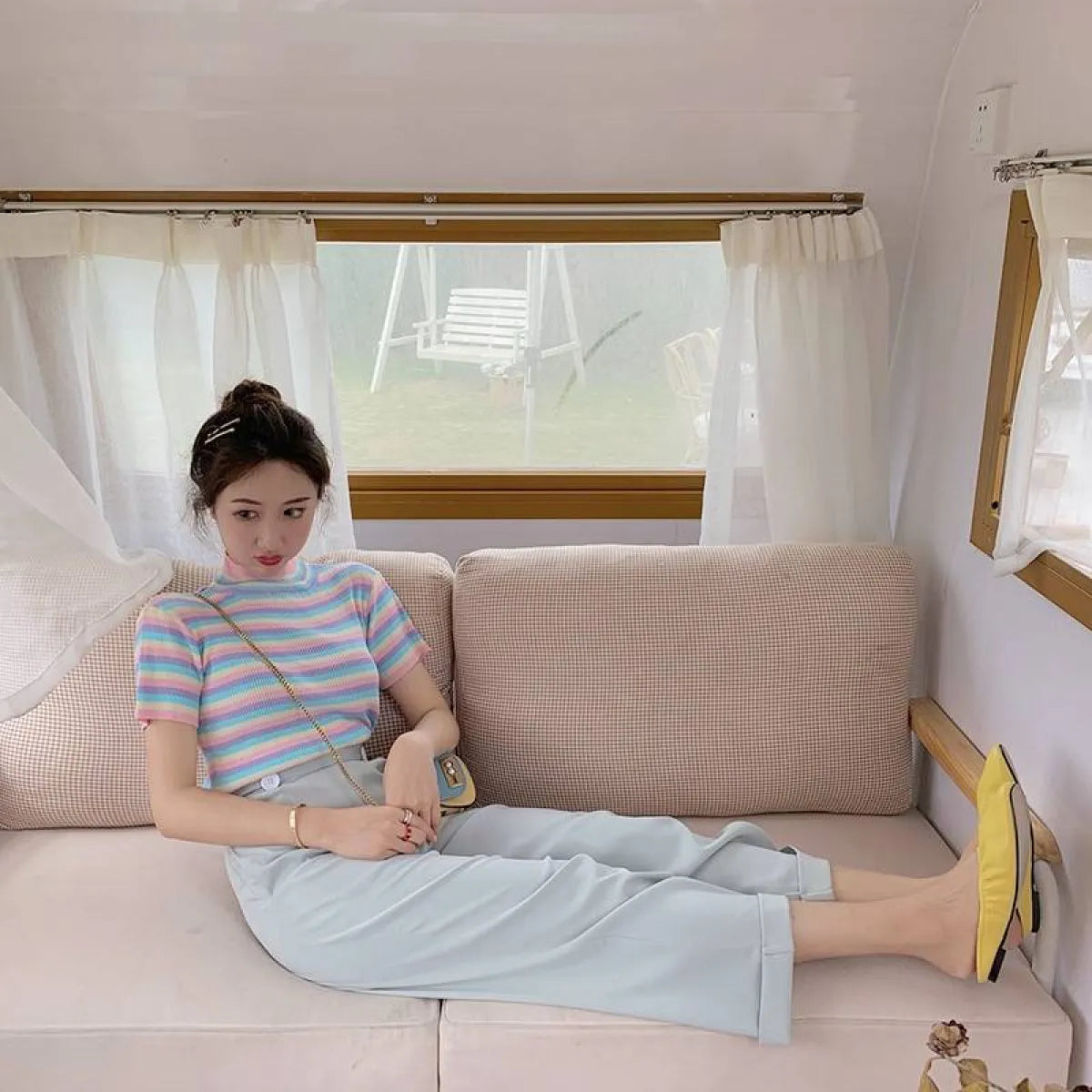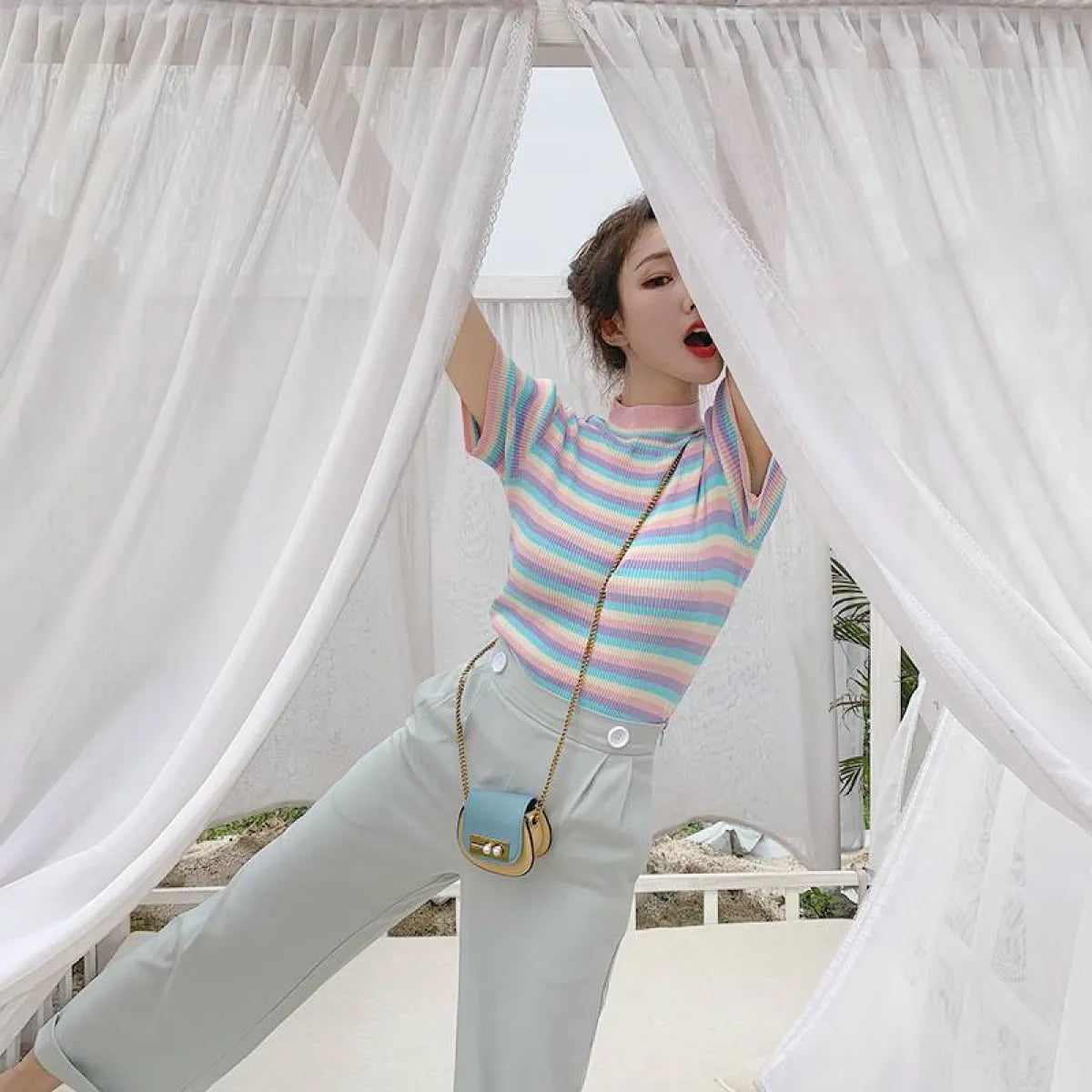 You can see all available product variations right in the description of our Colorful Striped Crop Top, so you’re welcome to choose any!
