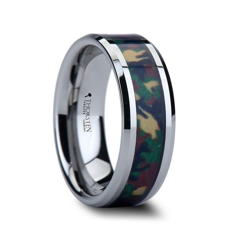- Other designers do not use military style camo and/or do not make it in color. This comfort-fit band also comes in 6 mm and 8 mm wide for couples who want a matching set, and is the perfect wedding band to represent your love, honor, and commitment. Note, inlay is protected by a resin that can be scratched. Re-sizing and Warranty on all Thorsten alternative metal rings, limited exchange|sizing fees compared to our competitors.