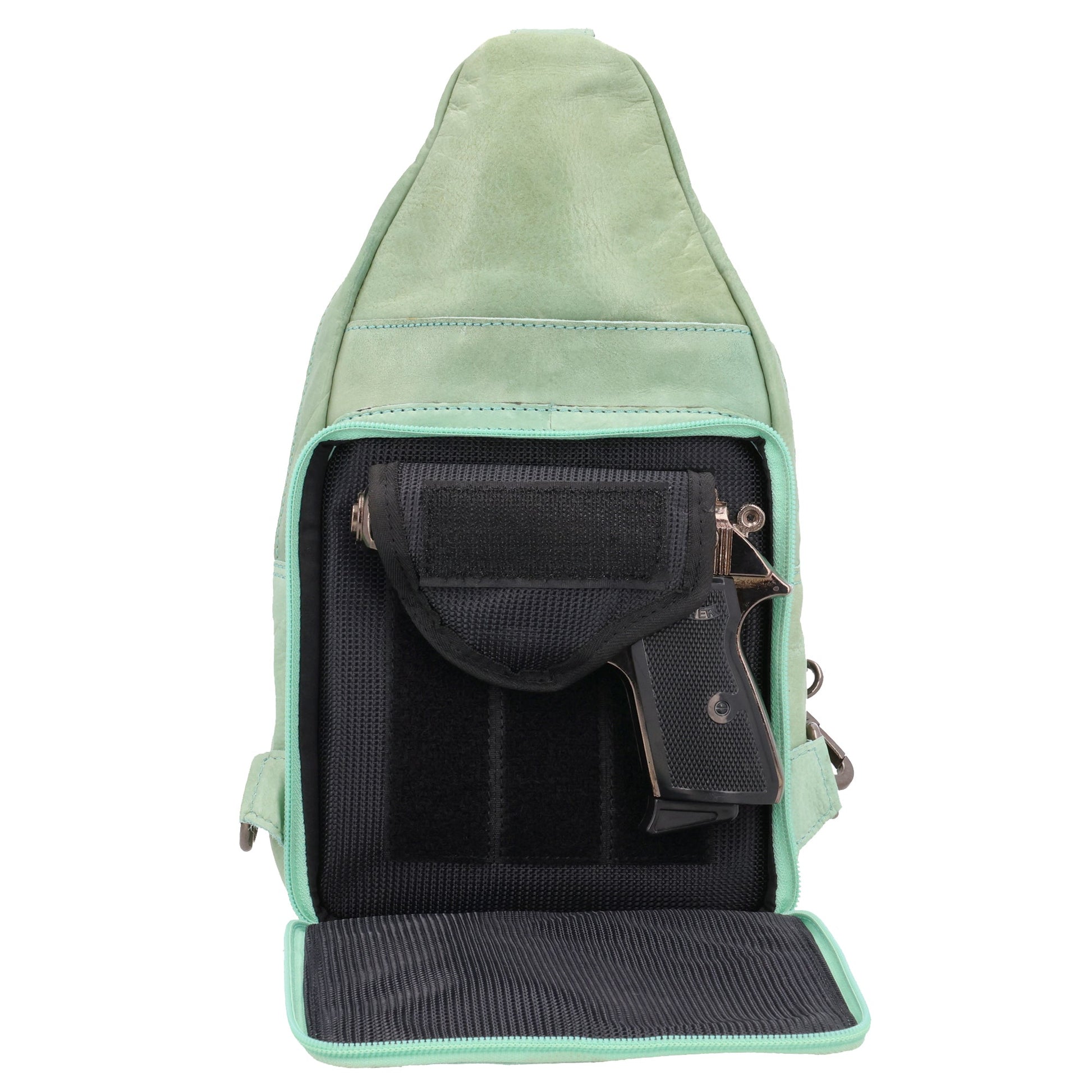 Concealed Carry Haven Sling Leather Backpack by Lady Conceal