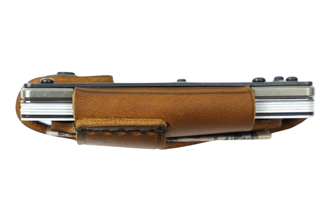 The Trayvax Contour is our most refined leather wallet to date. The bottom plate is highly-precise CNC-machined stainless steel. The top plate is PVD-coated for durability. Each plate is wrapped in top-grain oil-tanned leather, which will develop a patina as a constant reminder of your journey. Ideal for use as a front-pocket wallet, the sleek design and slim profile ensure a compact and lightweight everyday carry.