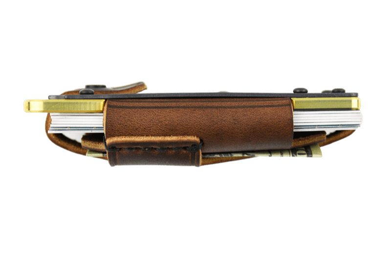 The Trayvax Contour in Brass Mississippi Mud, is our most refined leather wallet to date. The bottom plate is highly-precise CNC-machined stainless-steel, brass, or titanium. The top plate is PVD-coated for durability. Each plate is wrapped in top-grain oil-tanned leather, which will develop a patina as a constant reminder of your journey. Ideal for use as a front-pocket wallet , the sleek design and slim profile ensures a compact and lightweight everyday carry.