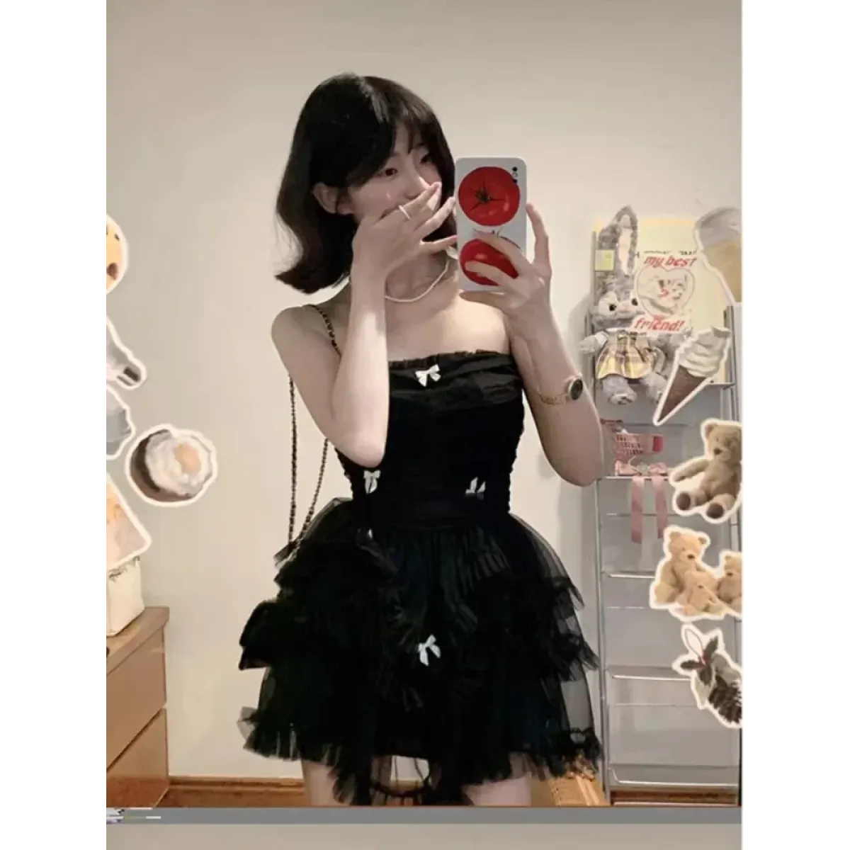 Pair it with platform heels, a choker necklace, and sheer gloves for an instant Y2K princess moment. For a daytime twist, throw on a cropped jacket and chunky sneakers for an effortlessly cool contrast. 💄👠