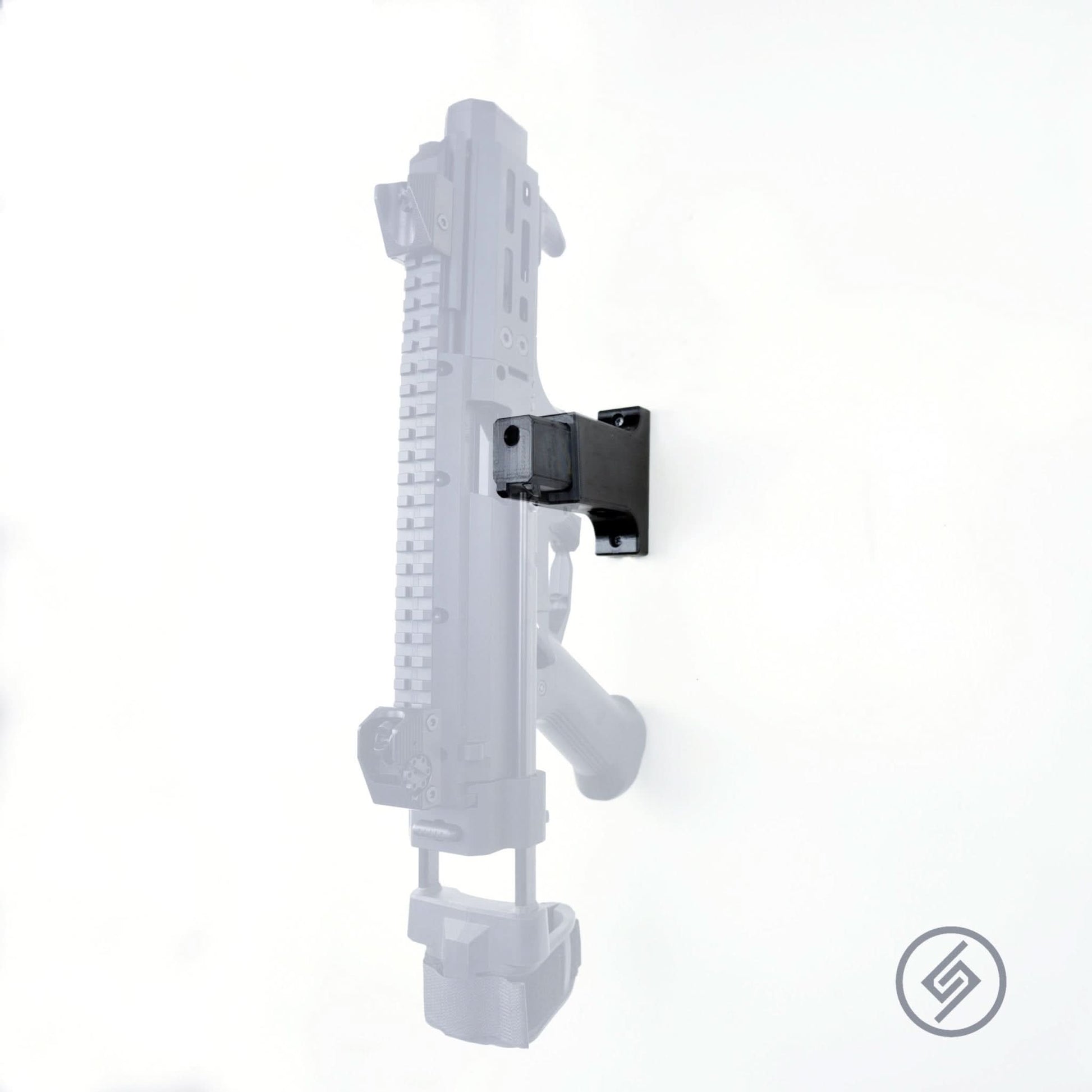 Store your CZ Scorpion EVO 3 upright with our vertical wall mount (top-rail out), perfect for tight spaces and tactical setups. Designed to fit 9mm EVO 3 S1, S2, and 3+ models, this mount holds your firearm securely while keeping it ready for fast access. Built tough in the USA to support your gear without compromise.
