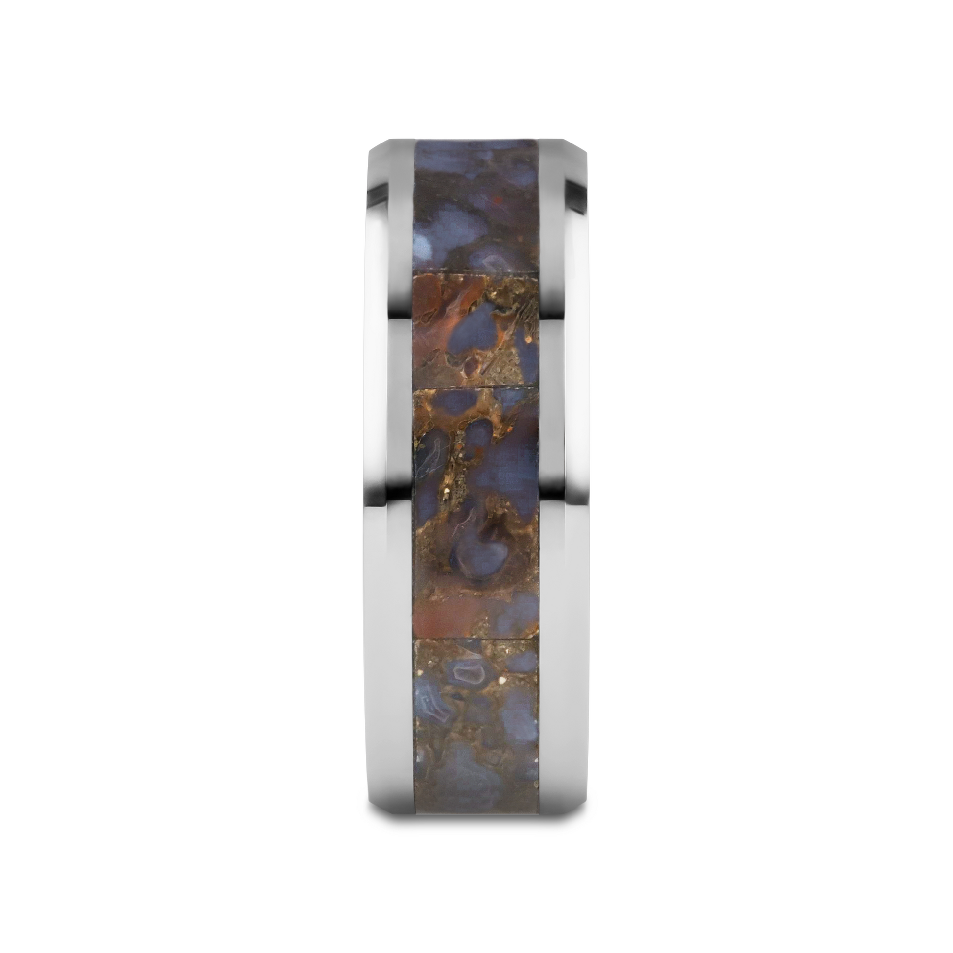 DEVONIAN Blue Dinosaur Bone Inlaid Tungsten Carbide Beveled Edged Ring - 4mm or 8mm
