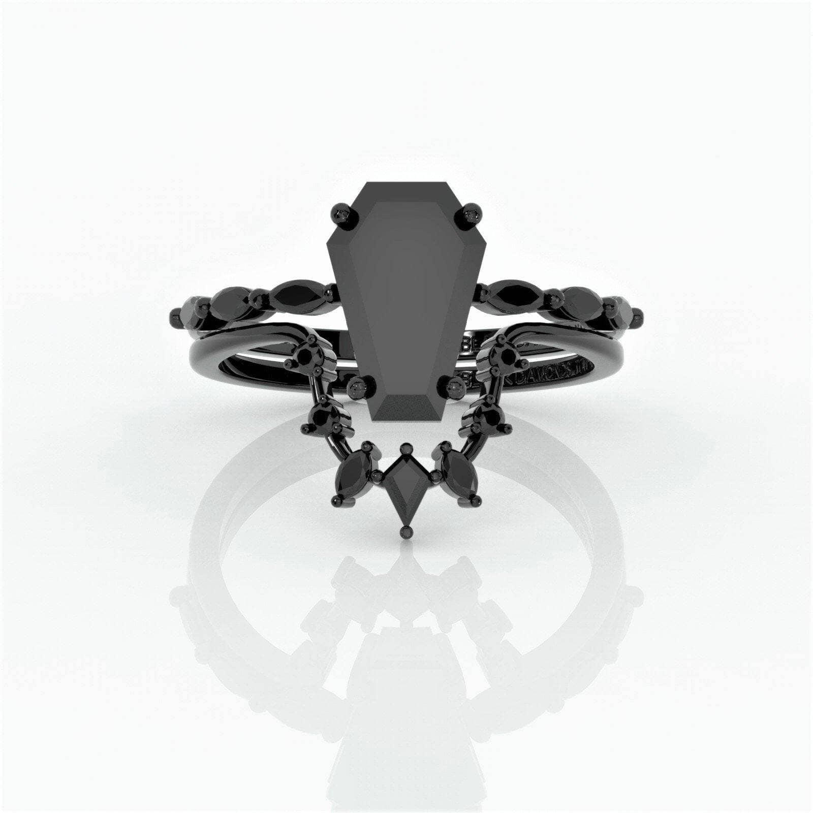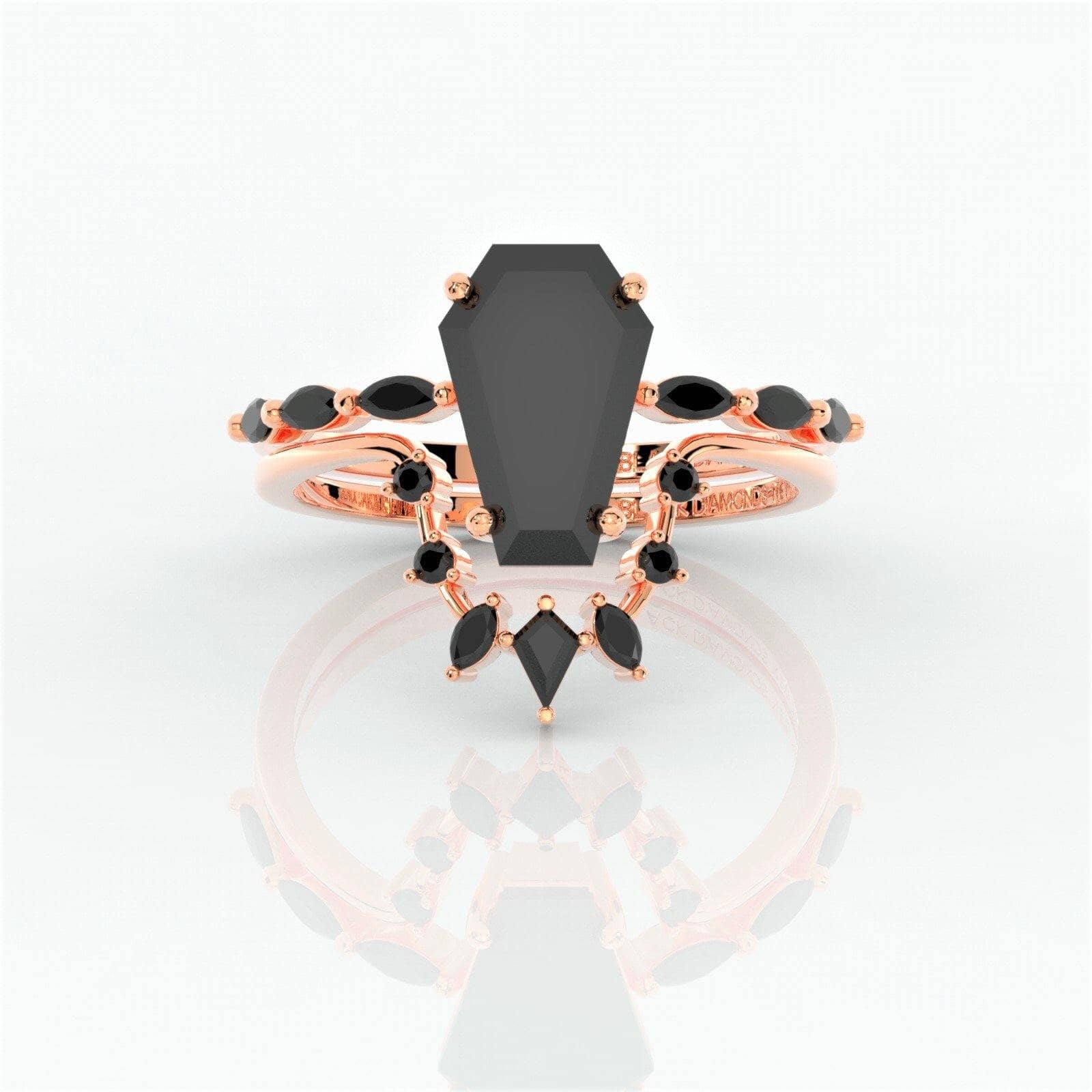 Devoted To You- Limited Coffin Cut Diamond Gothic Ring Set