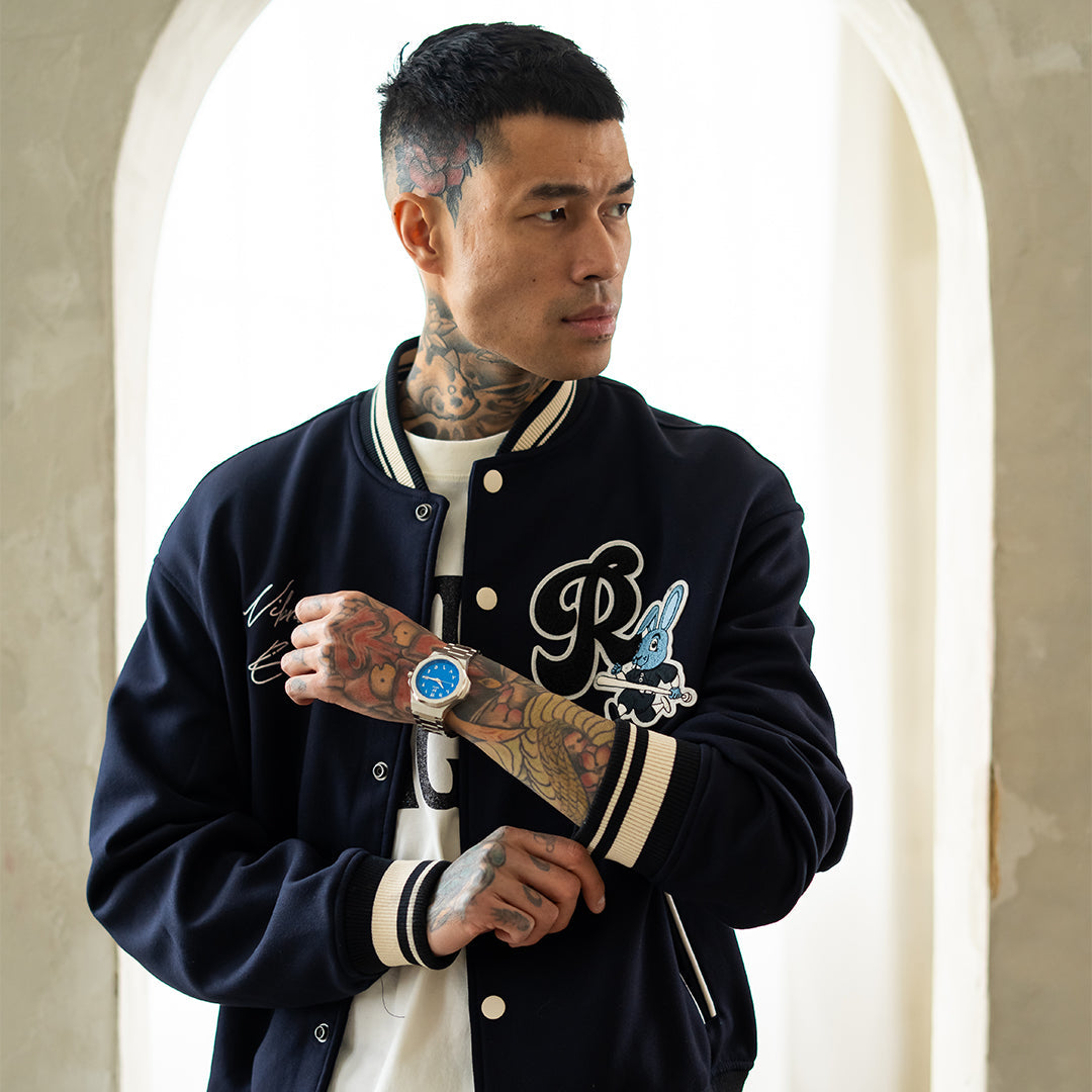 The Blue Steel Day Trip is a distinctly ocean-themed time piece in the MSTR collection. Inspired by one of Gerald Genta's most famous designs. The new sleek case is designed in a brushed silver NASA-Grade 316 stainless steel with a two-toned finish on the bezel in brushed and polished. The face of the watch features a blue ridged design, topped by chrome-outlined luminescent Arabic hour markers and hands. The new 3-link steel band features the new look along with the coveted butterfly deployment clasp and easy-to-remove screw-pin links. Each Blue Steel Day Trip is individually numbered on the case back, and limited in quantity to only 100 pcs!