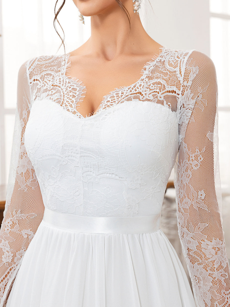 Elegant non-stretch lace long-sleeved maxi evening dress with padded