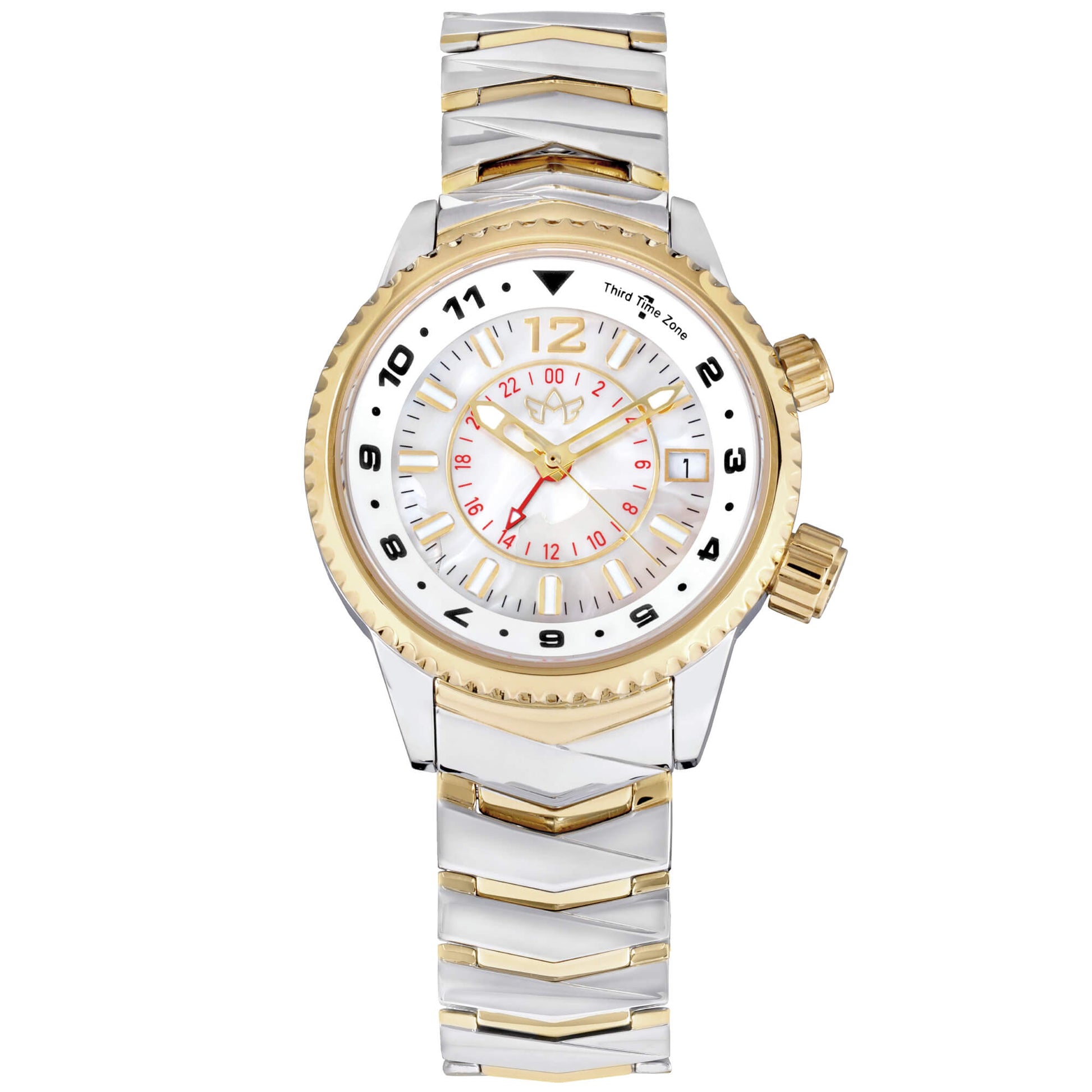 This is your new travel partner. With not just a GMT, but three time zones, Super Luminova markings, and bi-directional rotating bezel; the Elise is a voyager’s must-have. Its Mother-of-Pearl cabin interior and softened stainless steel carvings make this watch a statement piece for exploring the world from above.