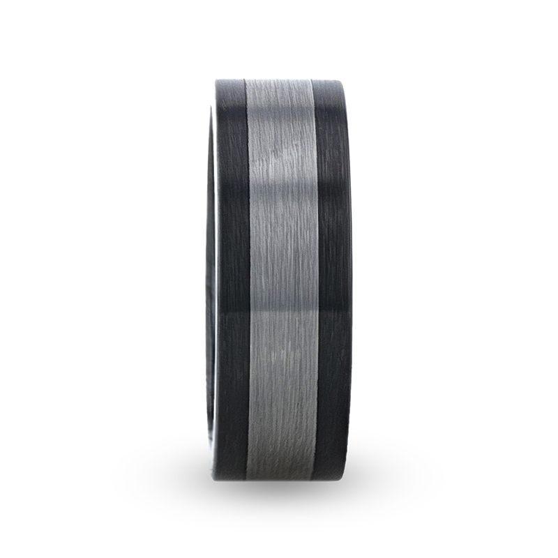 ENDAST Black Ceramic with Brushed Tungsten Inlay Wedding Band - 8mm