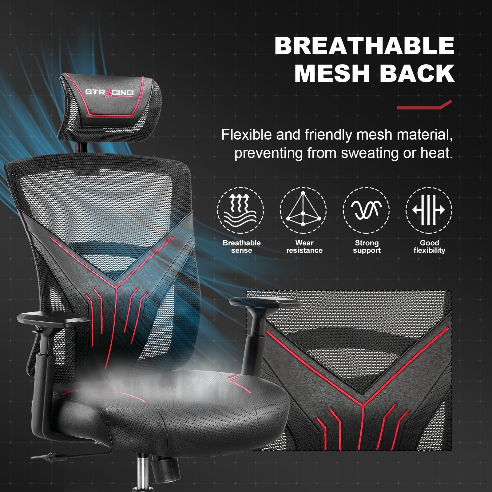 - ERGONOMIC S-CURVE DESIGN: GTRACING ergonomic gaming chair focusing on health and comfort. S-Curve design provides 5 supporting points(head/ back/ hips/ hands) and fully strong adjustable lumbar support protect the health of the spine and provide comfy.