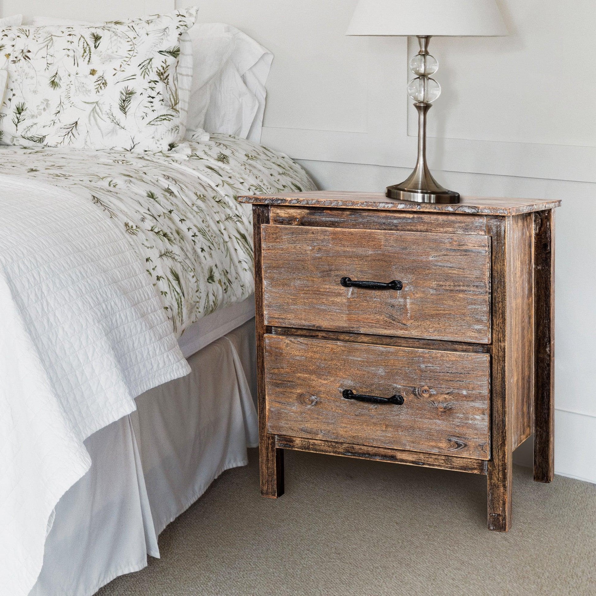Farmhouse Solid Wood Bedroom Nightstand Side Table