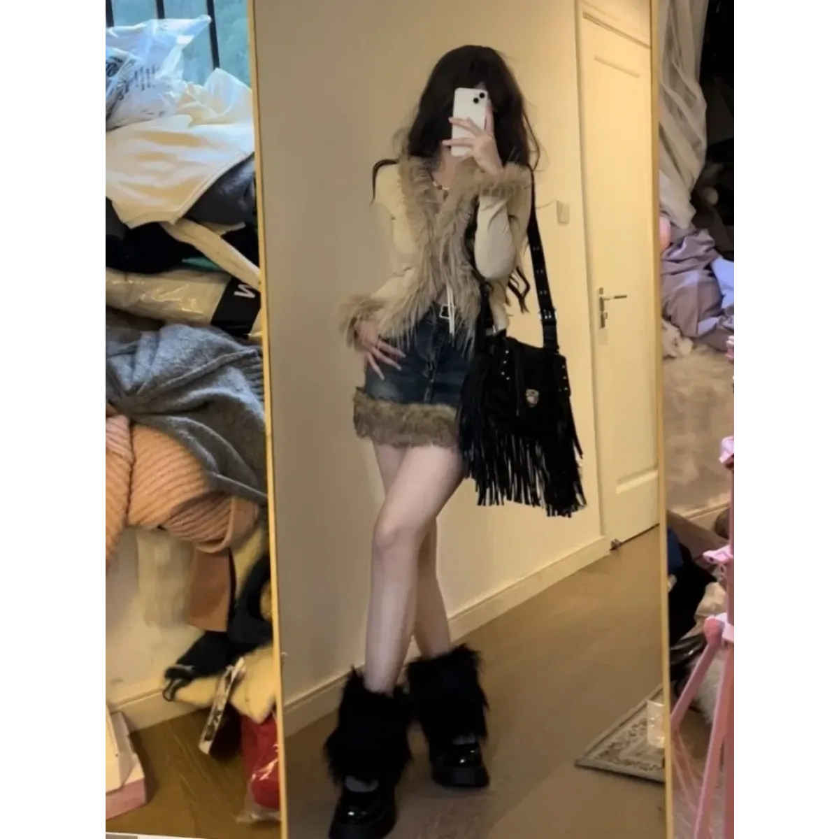 Unleash your inner rebel in this Faux Fur Trim Cardigan, where cozy meets edgy in the most iconic way. With a soft knit body and plush faux fur trimming along the neckline and sleeves, this piece channels the perfect Y2K goth-punk princess vibe. The V-neck cut and open-stitch front give it a casual feel, while the bold silhouette makes it a statement layer for every alternative baddie. Whether you're going full punk or mixing dark romance with softcore fashion, this cardigan is your new go-to. 🖤🔥🌙