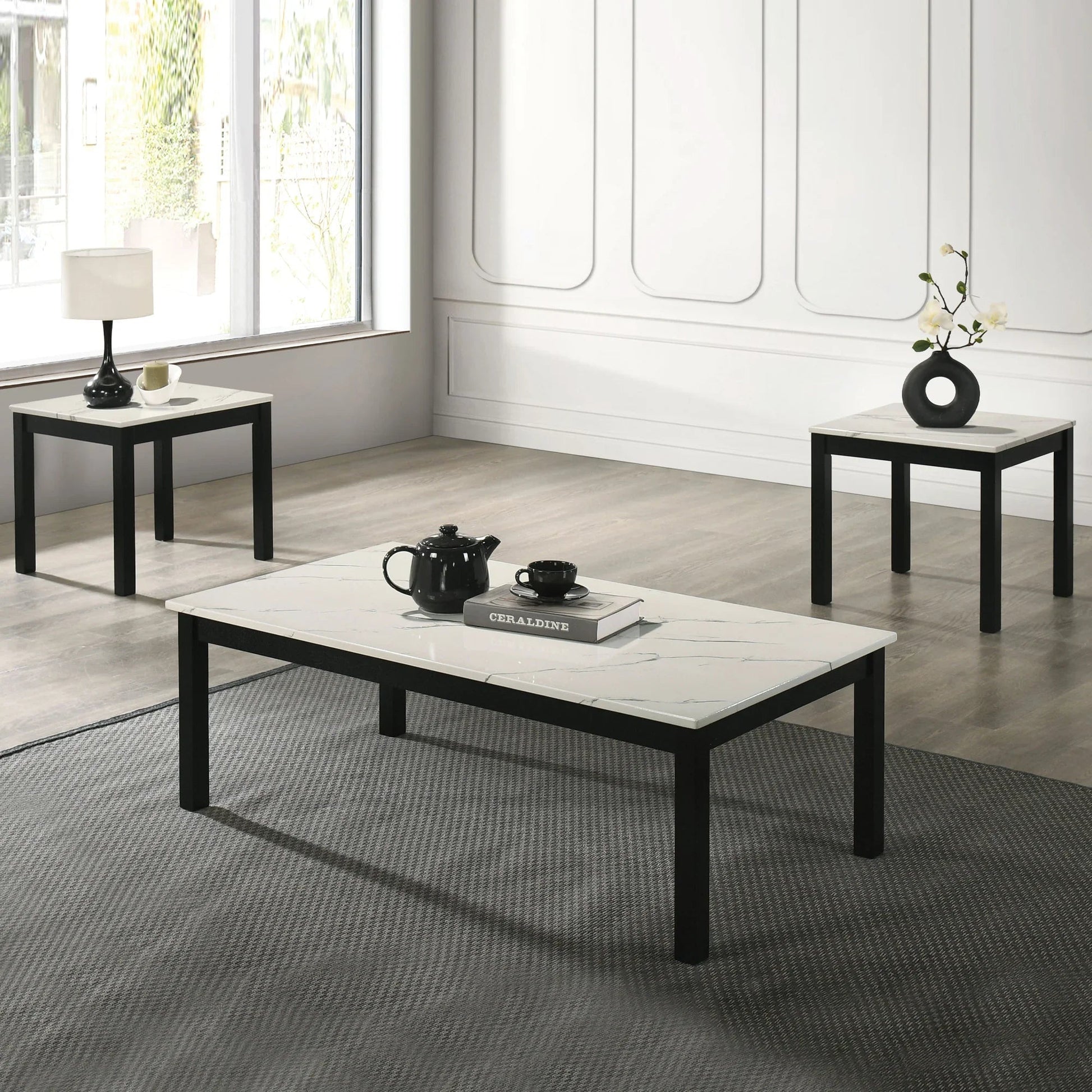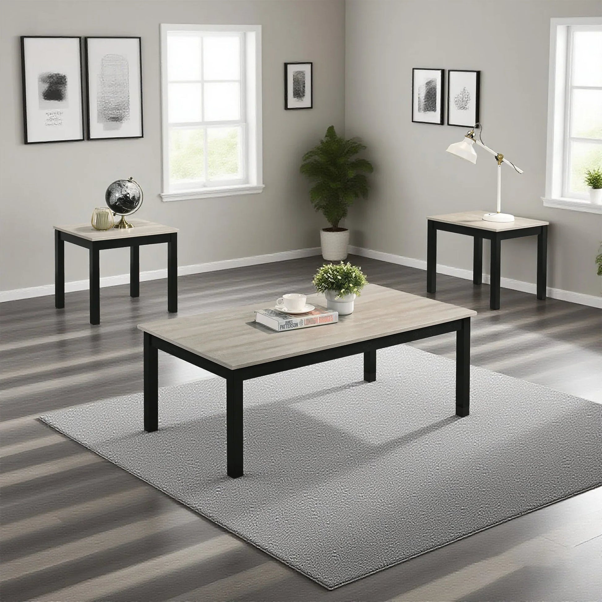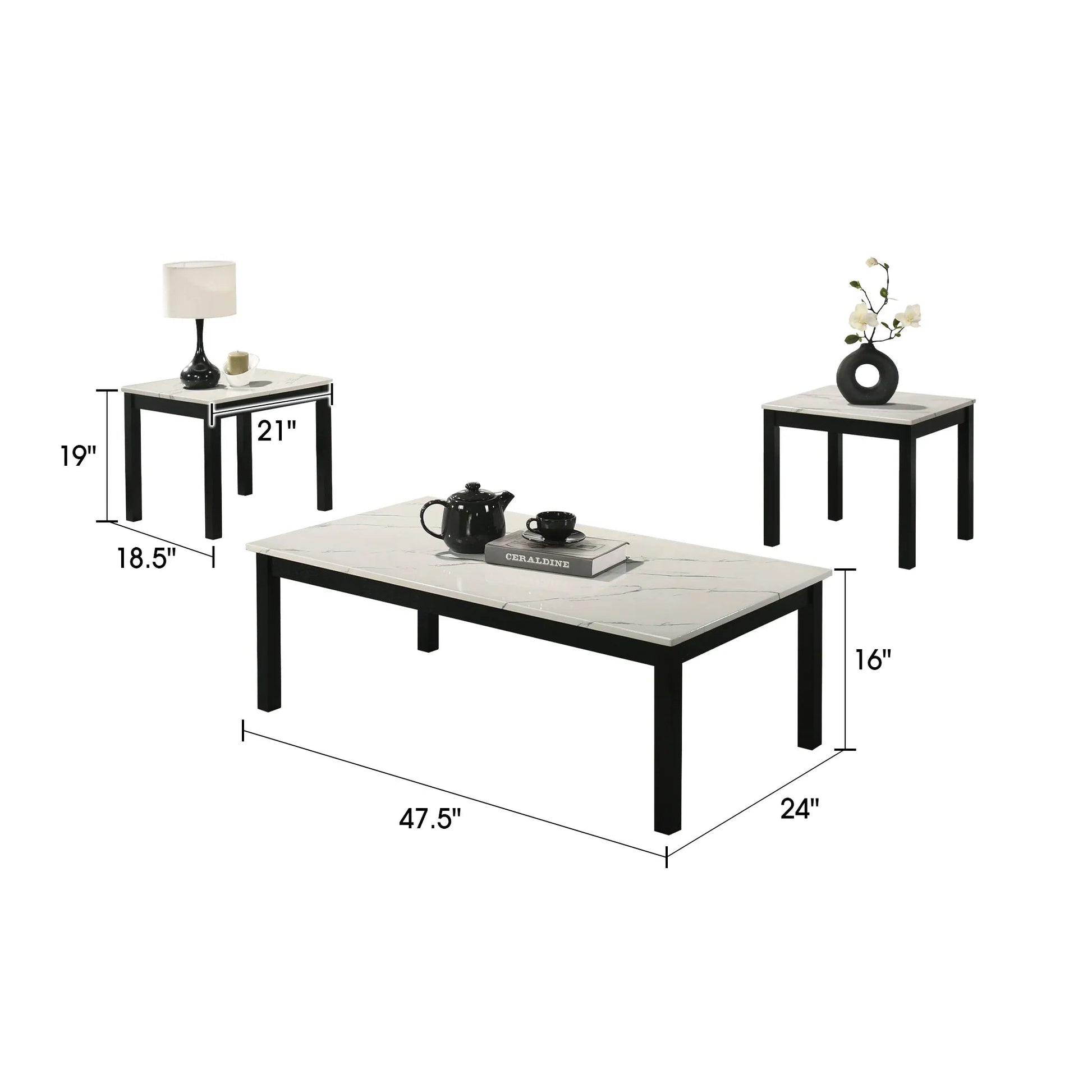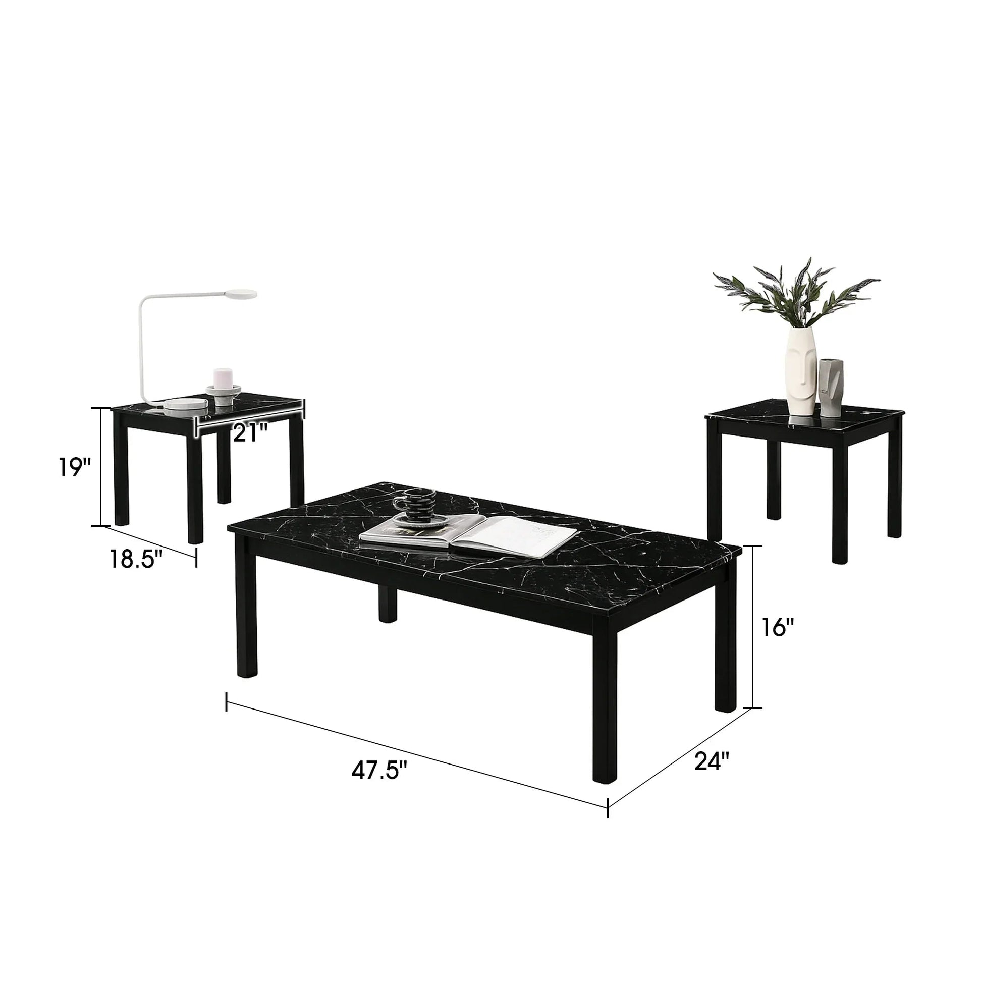 【Spacious & Practical】 :Includes 1 large coffee table (47.5" W x 24" D) and 2 matching end tables, providing ample surface space for drinks, decor, and everyday use.