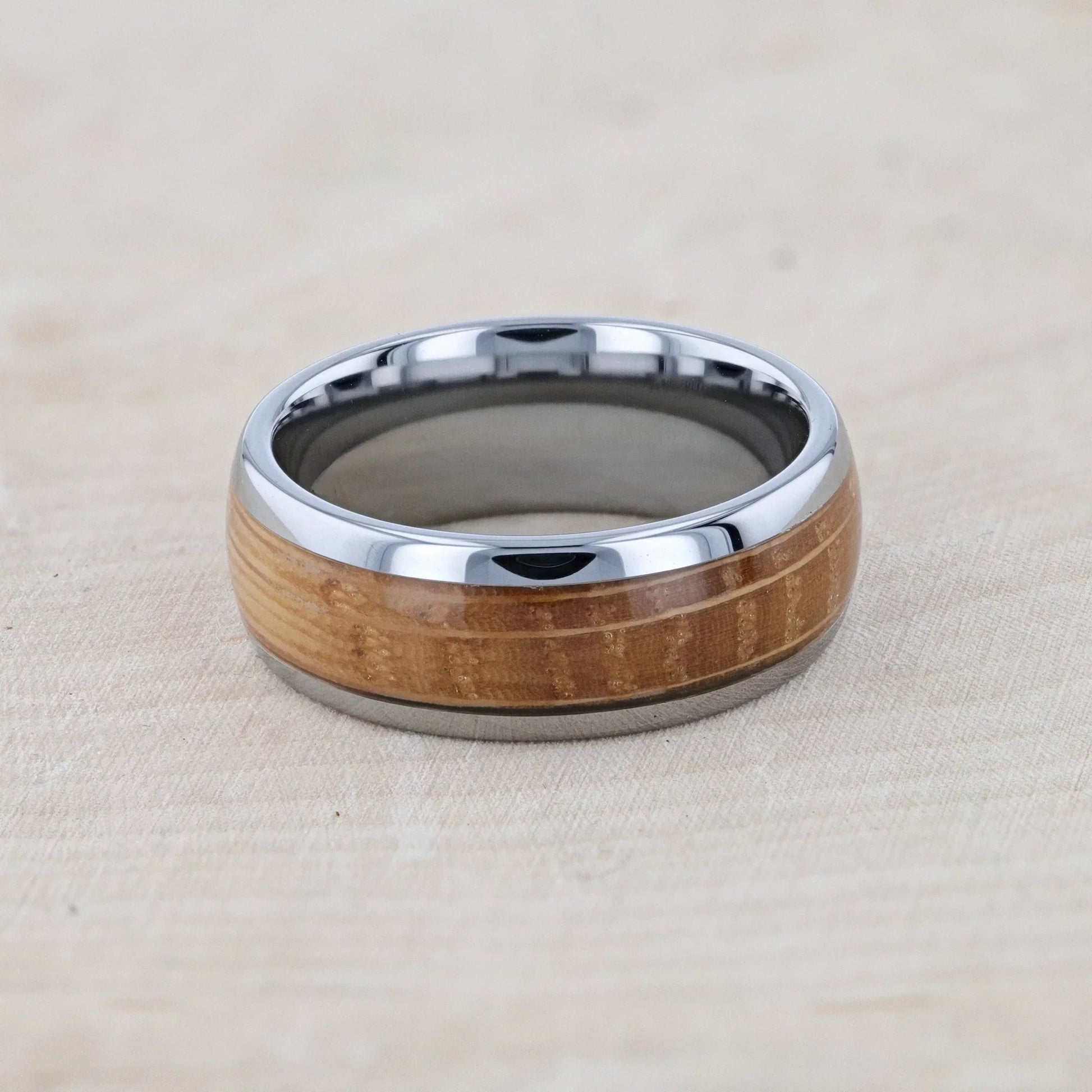 FORMENT Whiskey Barrel Inlaid Tungsten Men's Wedding Band With Domed Polished Edges Made From Genuine Whiskey Barrels - 8mm