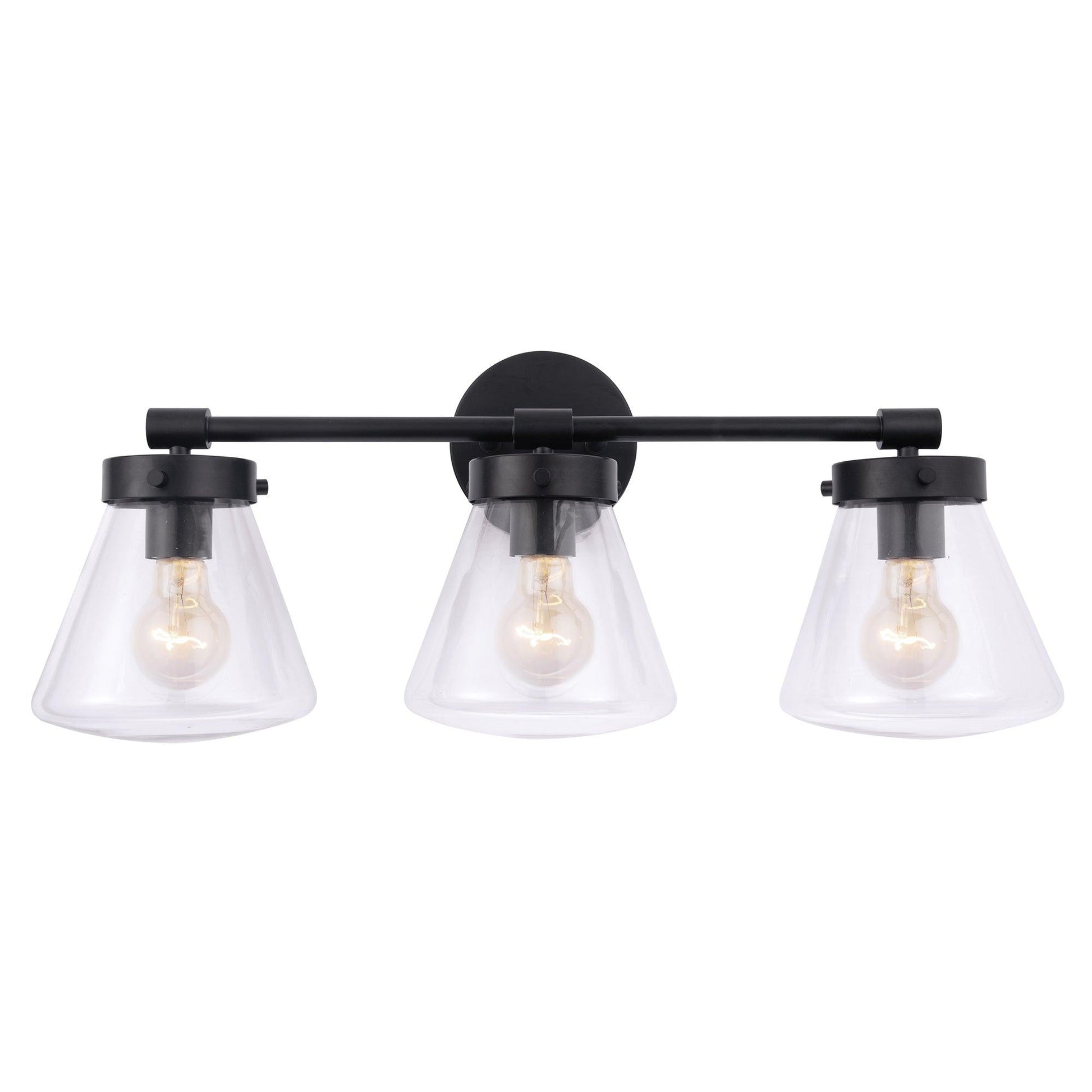 The Gleam Modern Farmhouse 3-Light Vanity Light is a stylish addition to any home. Made from high-quality steel, this vanity light is both durable and long-lasting. The clear glass shades provide a beautiful, unobstructed view of the bulbs inside.