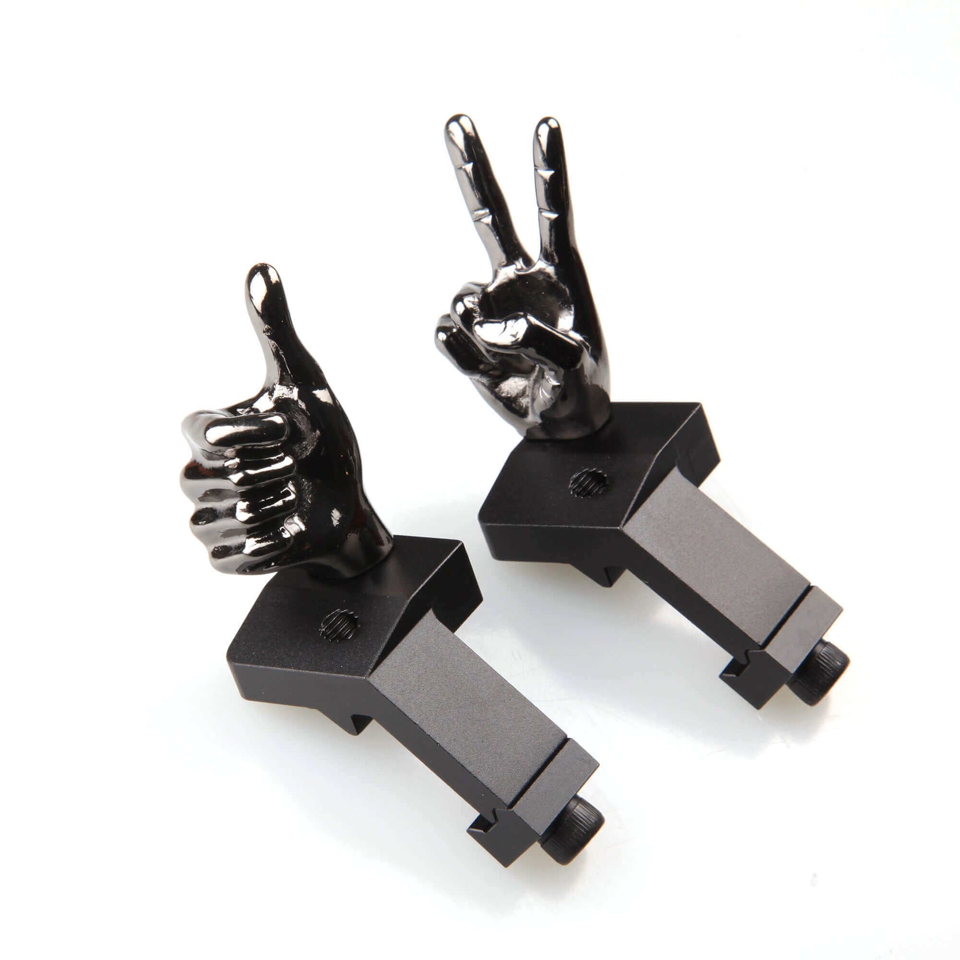 DISCLAIMER: The novelty finger iron sight set sold on this website can be installed on real firearms. However, it is important to note that this product is intended for novelty and entertainment purposes only and should not be relied upon as a serious firearm accessory. We are not responsible for any injuries, damages, or legal issues that may arise from the use of this product as a firearm accessory. Always handle firearms with proper safety precautions and use only accessories that are specifically designed and tested for use with firearms. By purchasing this product, you assume all responsibility for its use and agree to use it responsibly and in accordance with all applicable laws and regulations.