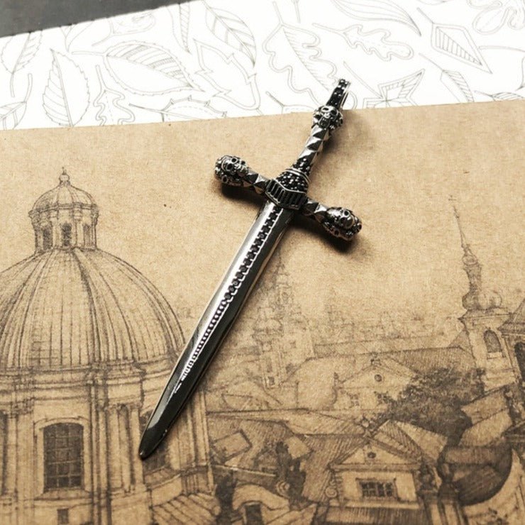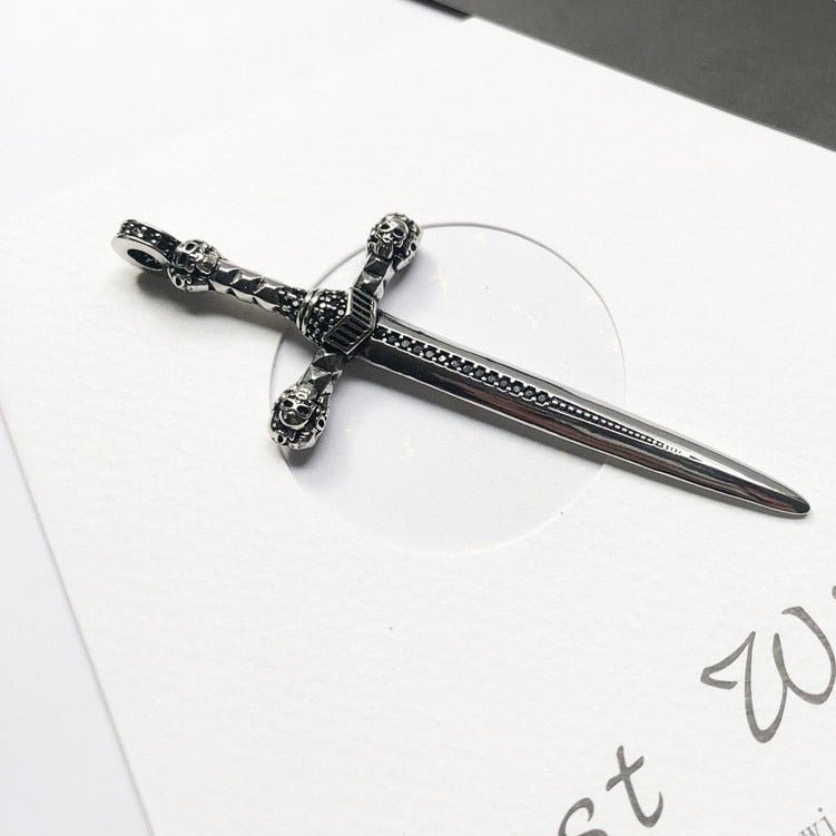Gothic European Style Sword & Knight Skull with Crown Pendants