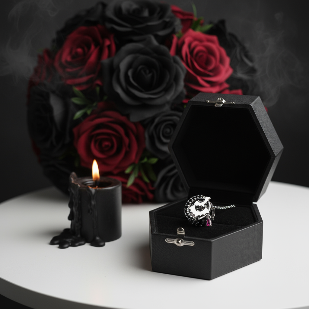 Gothic Flower Moon Bat & Vintage Style Hanging Beads