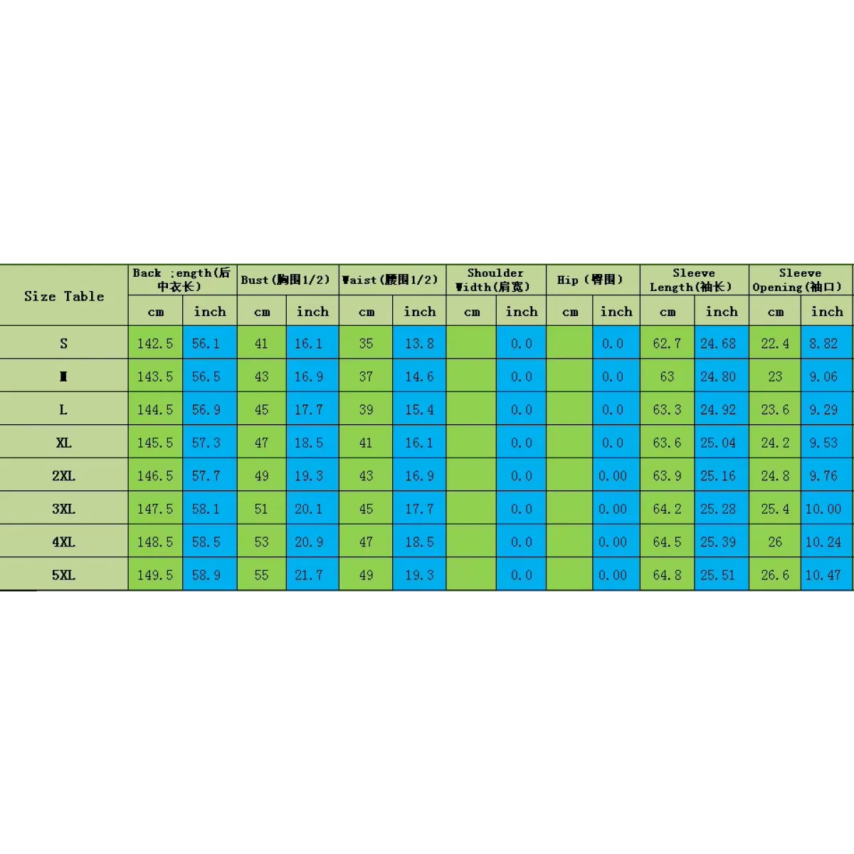 | Size | Back Length (cm/inch) | Bust (cm/inch) | Sleeve Length (cm/inch) |