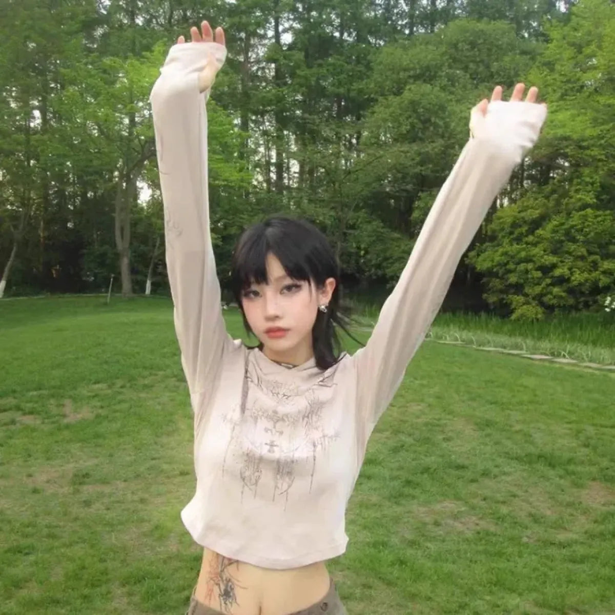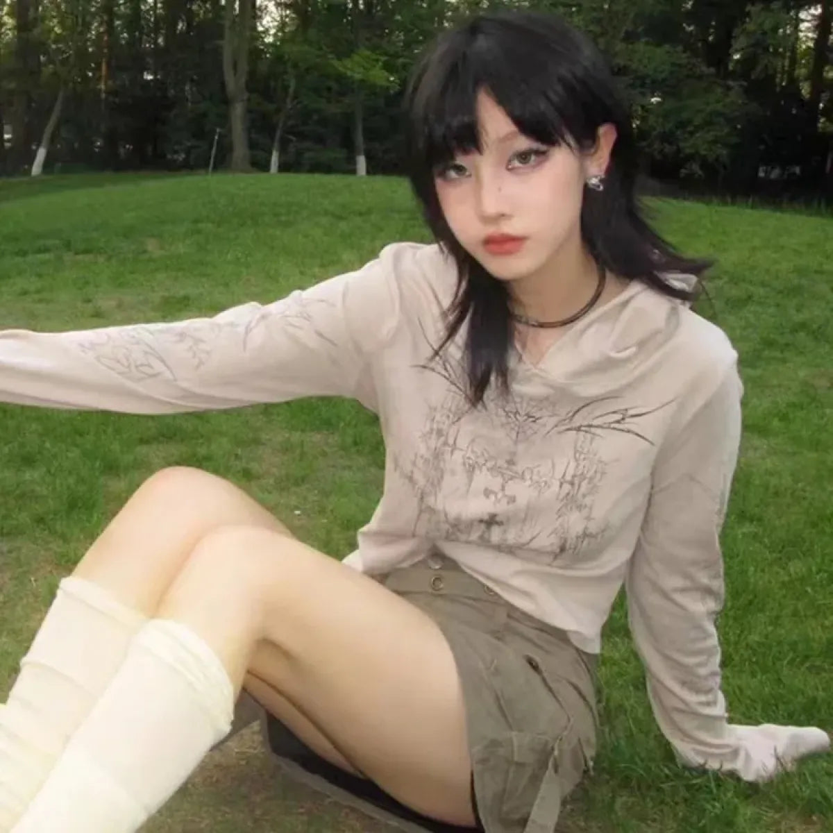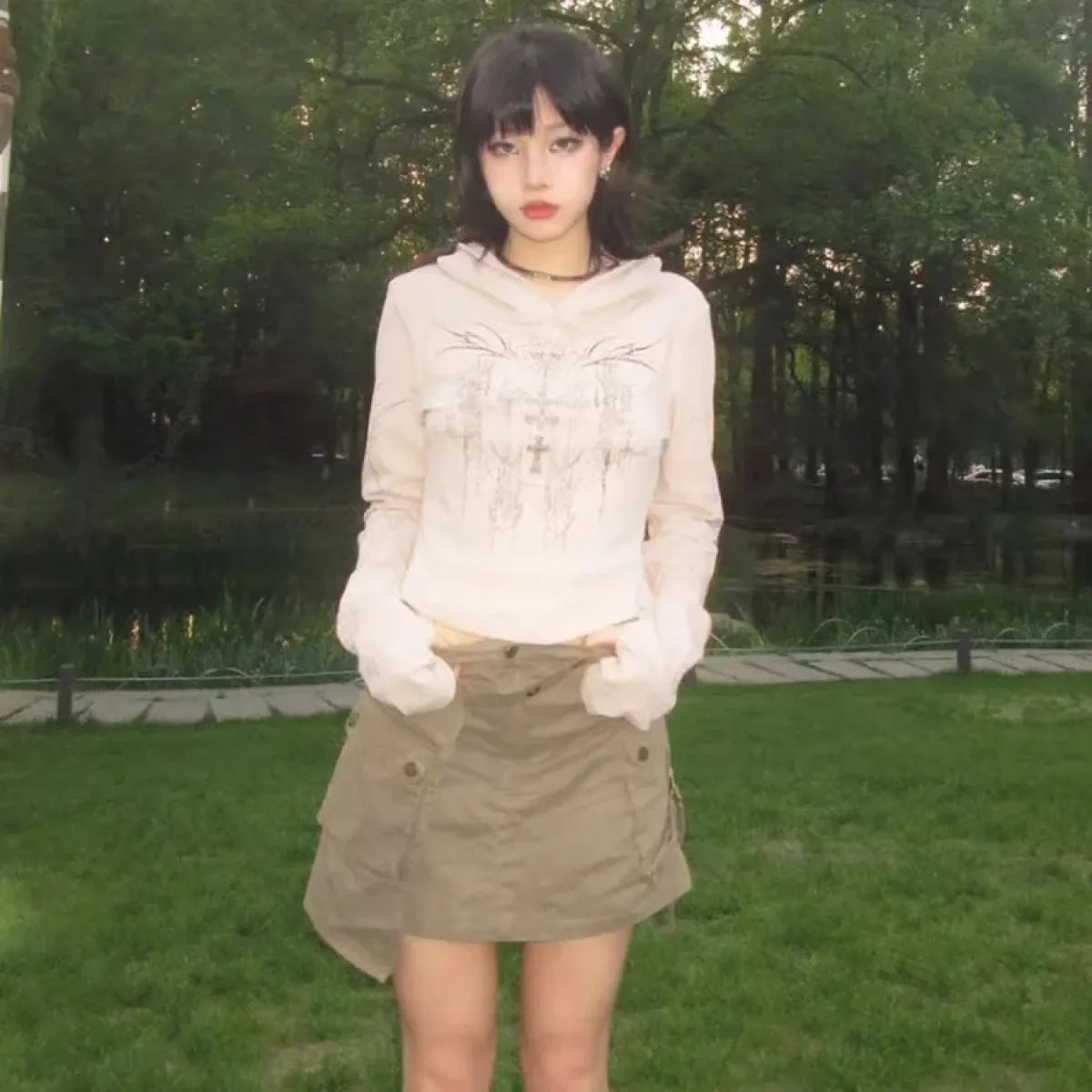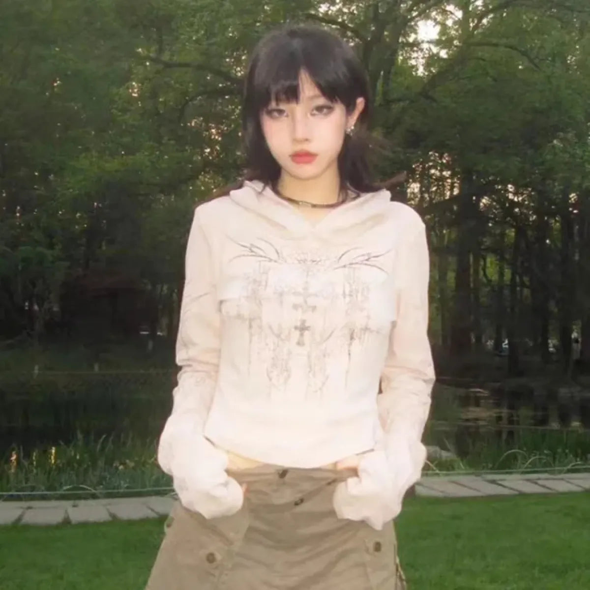 Gothic Print Hoodie – Y2K E-Girl Long Sleeve Harajuku Top