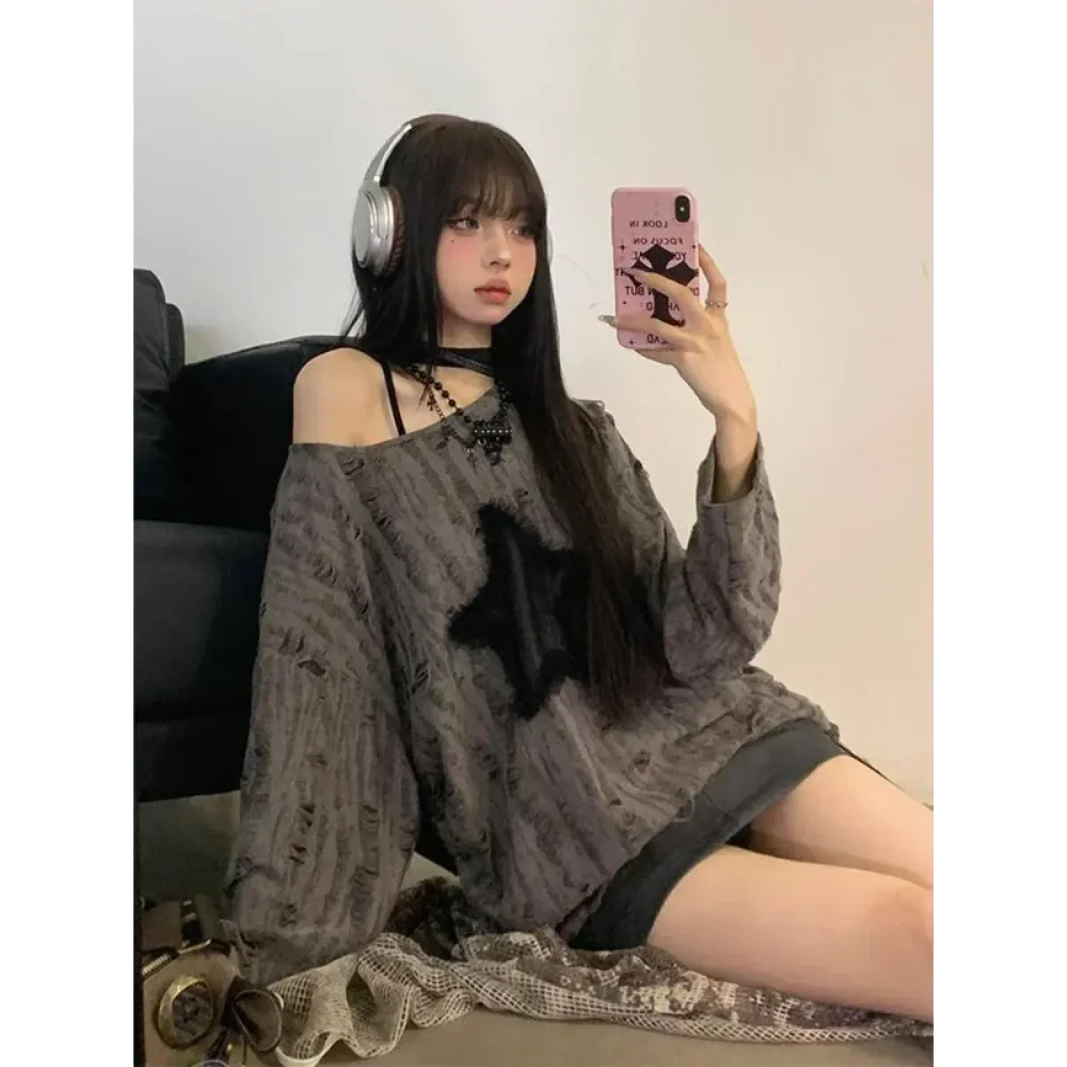 👗 Styling Tip: Pair this Grunge Star Print Distressed T-Shirt with ripped jeans and combat boots for an effortlessly cool and edgy ensemble.