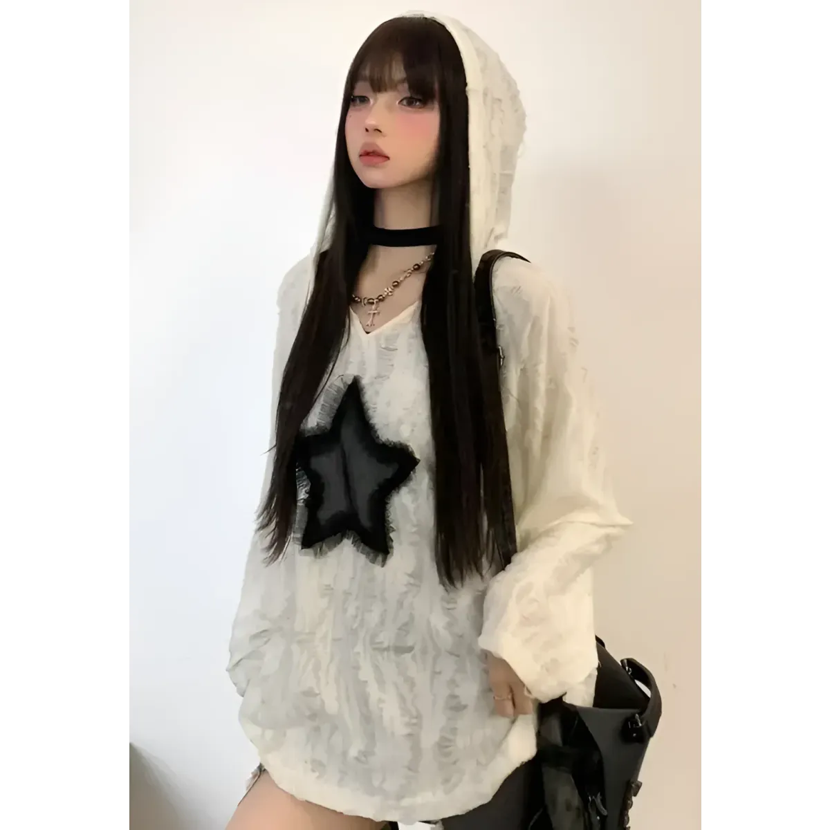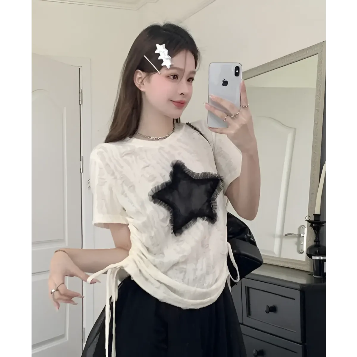 Step into the edgy world of street fashion with our Grunge Star Print Distressed T-Shirt. Embrace your rebellious side with this high street-inspired tee, featuring a unique star print and distressed detailing for an effortlessly cool look.