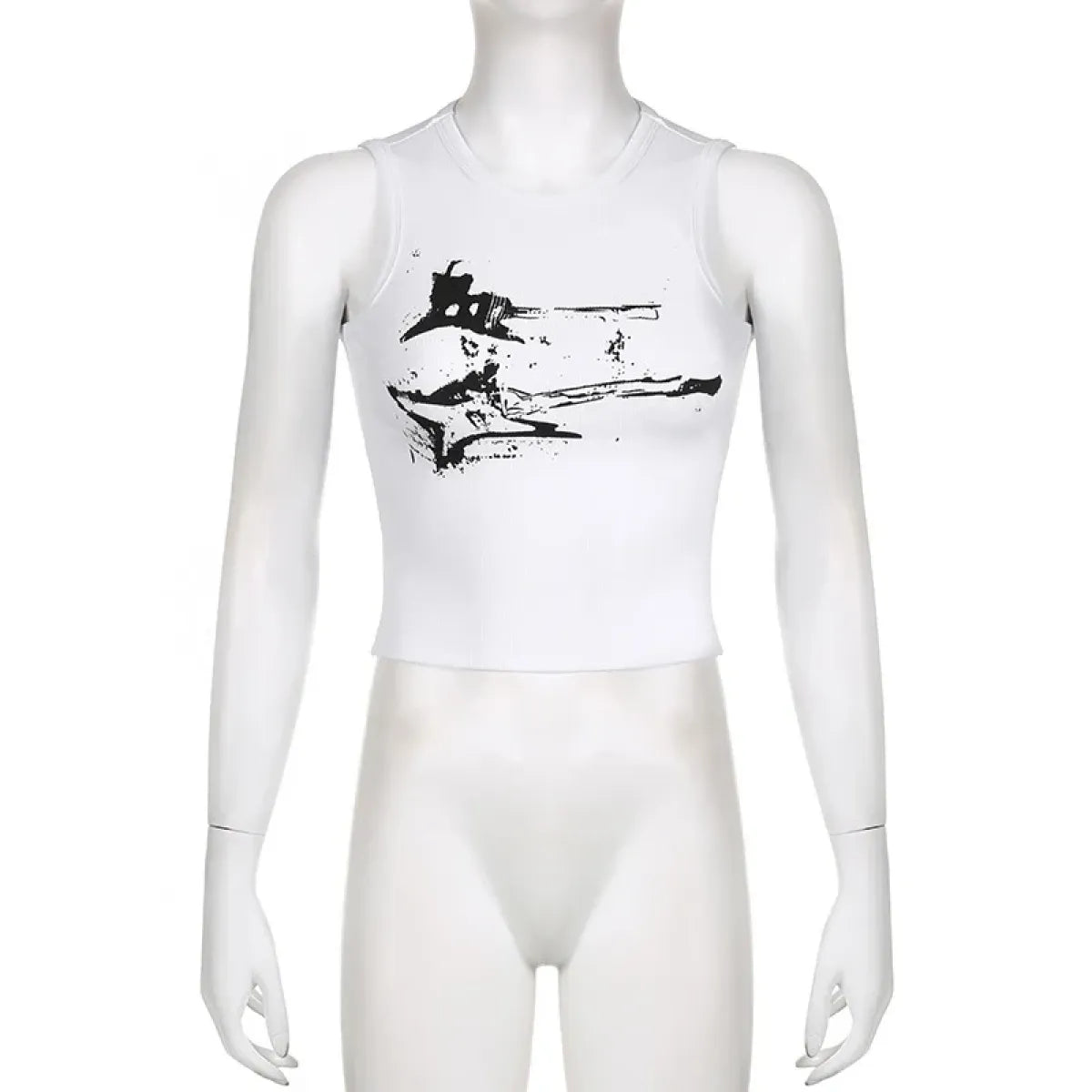 🌸 Introducing the Guitar Print Tank Top: Ribbed Grunge Crop Top 🌸