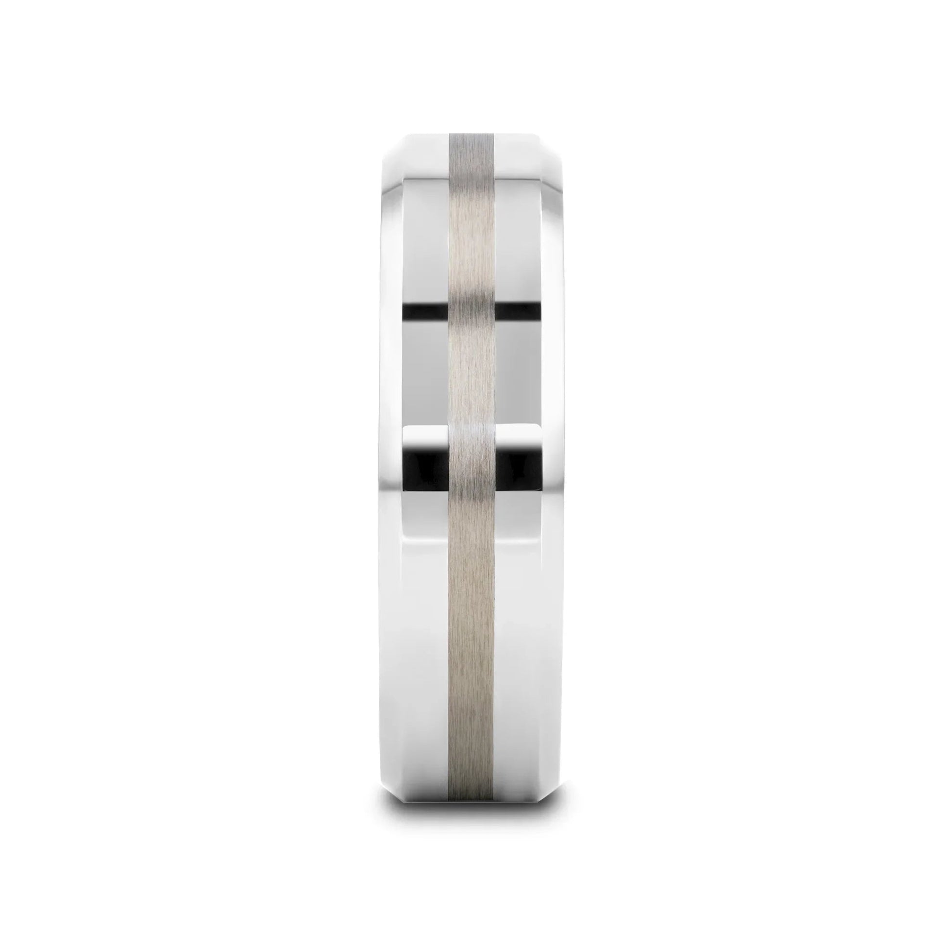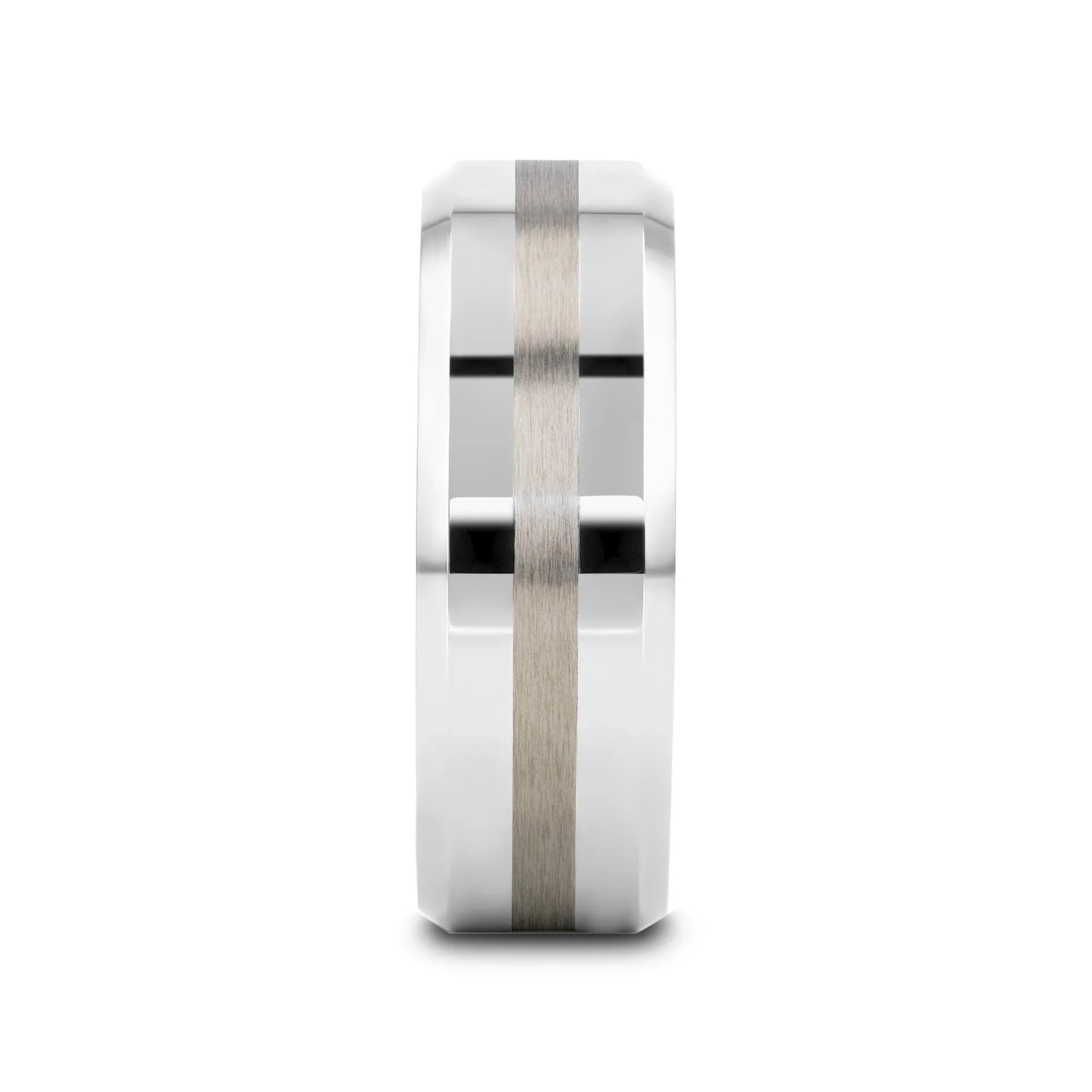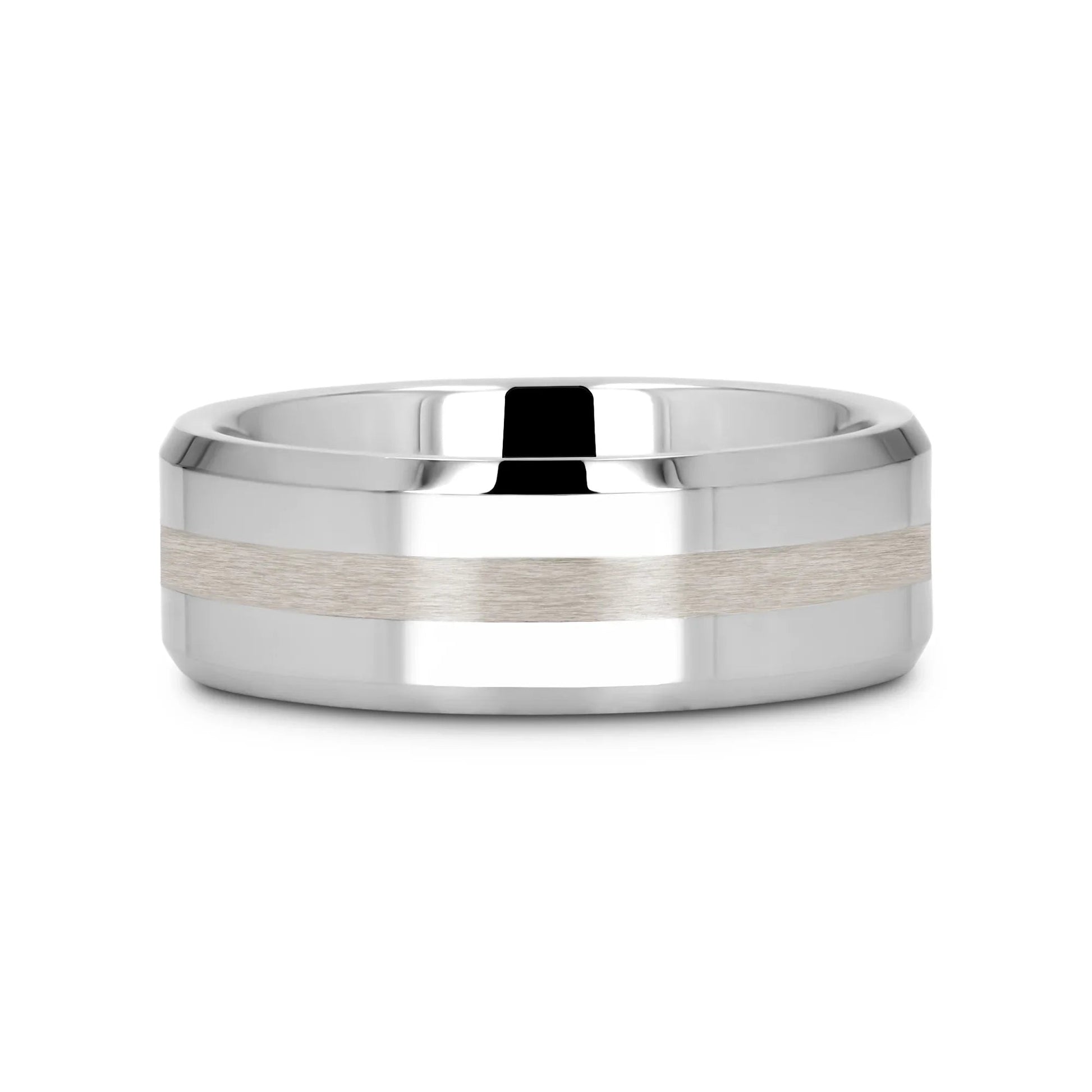 HALSTEN Platinum Inlaid Beveled Tungsten Carbide Wedding Ring - 6mm & 8mm