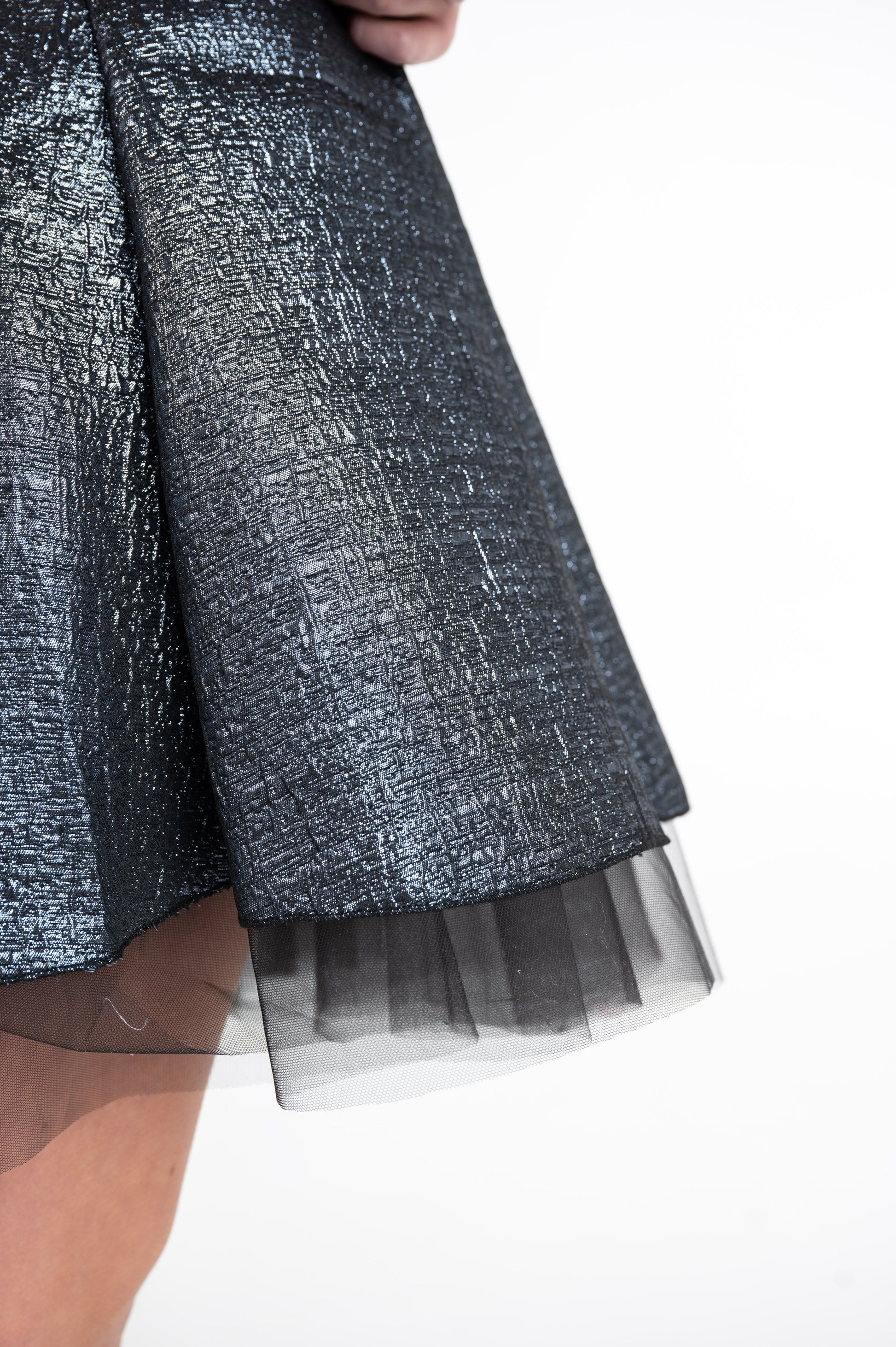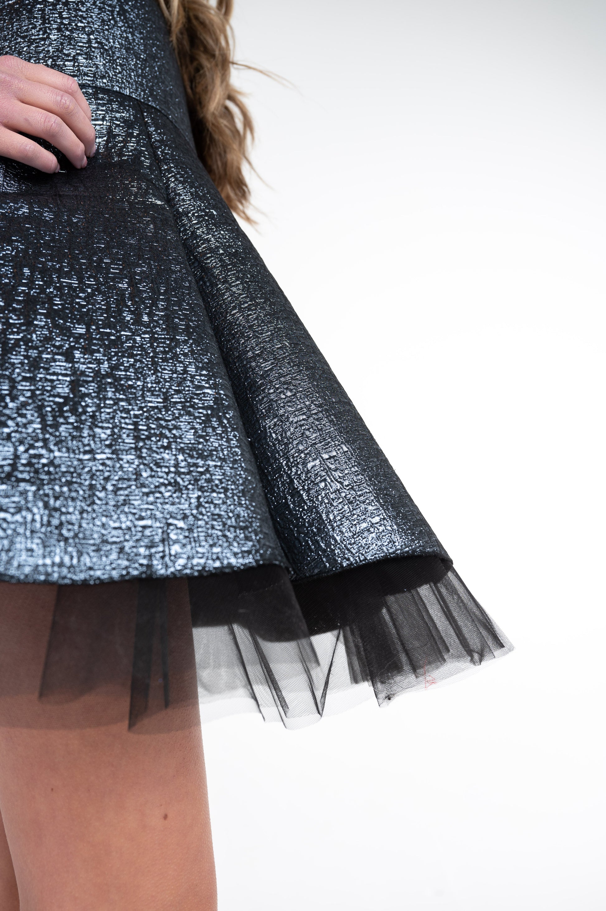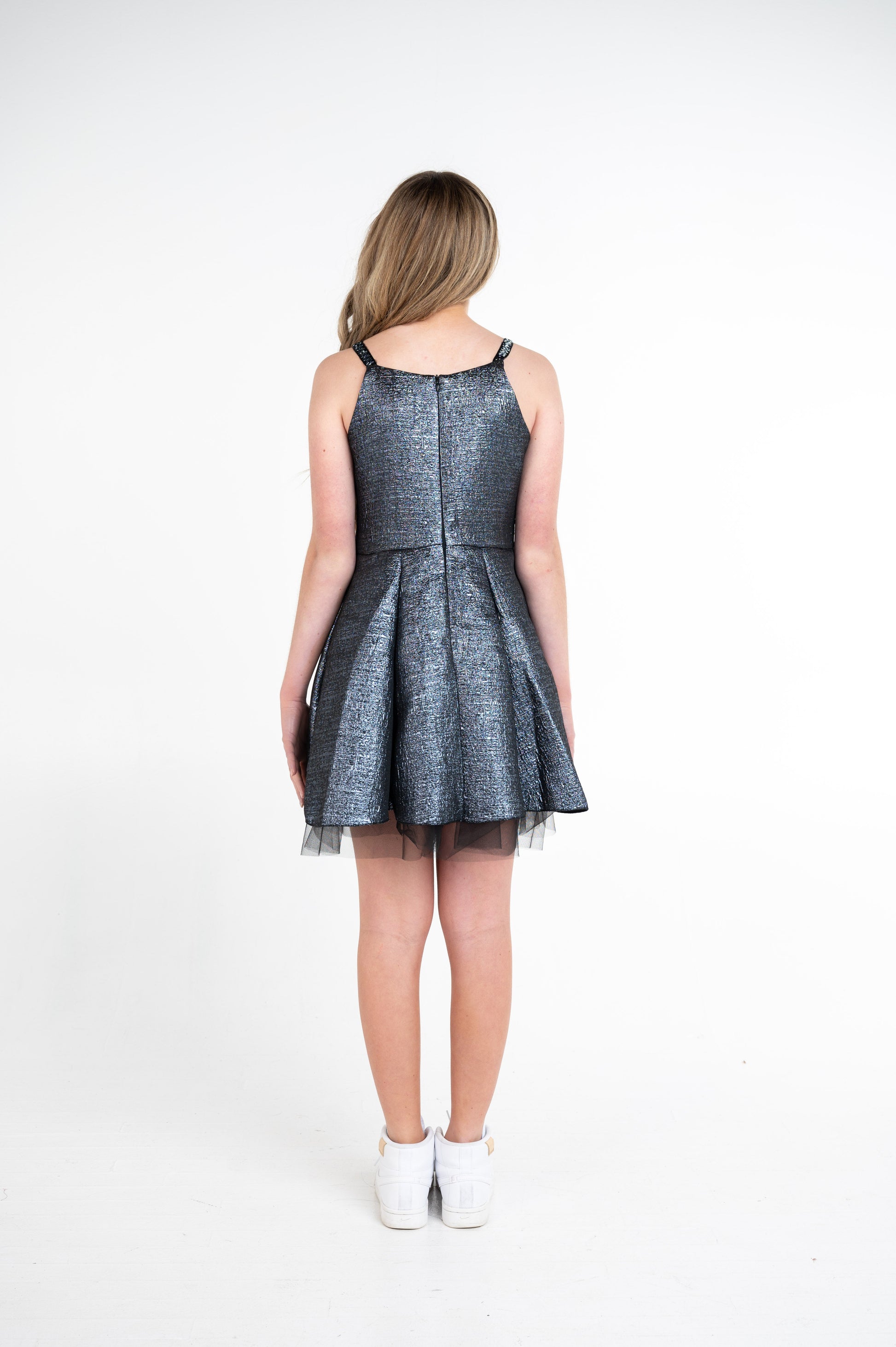 - Zoe "Henley" iridescent brocade dress with embellished crackle straps