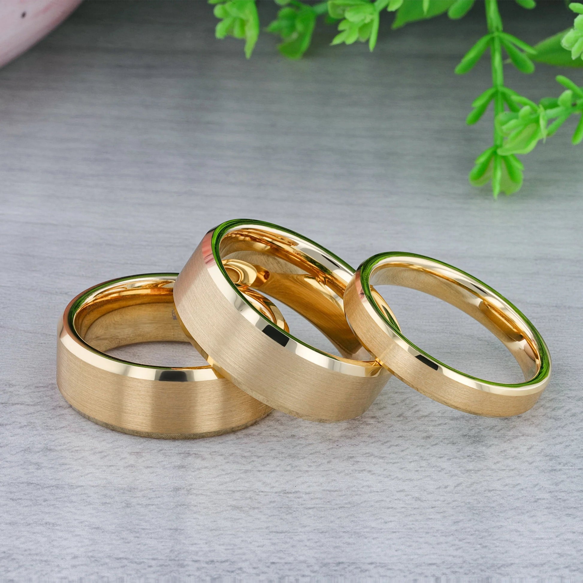 HONOR Gold-Plated Tungsten Beveled Edge Flat Ring with Brushed Center – 6mm & 8mm