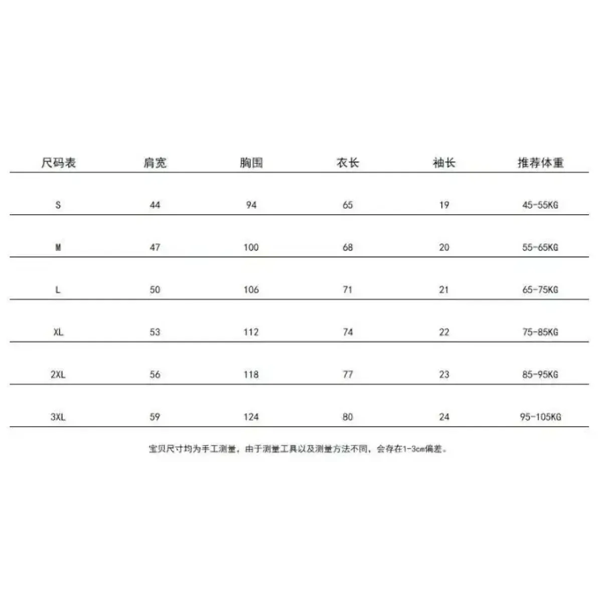 - XL: Bust: 106cm, Length: 67cm, Shoulder: 53cm, Sleeve: 20cm