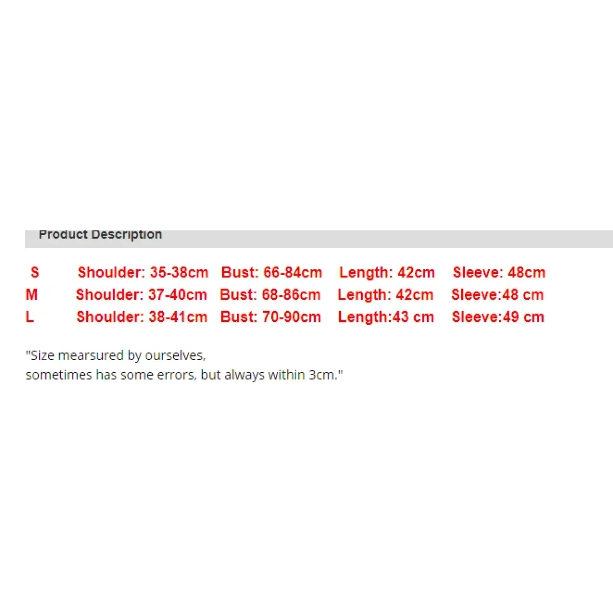 Size | Shoulder (cm) | Bust (cm) | Length (cm) | Sleeve (cm) |
