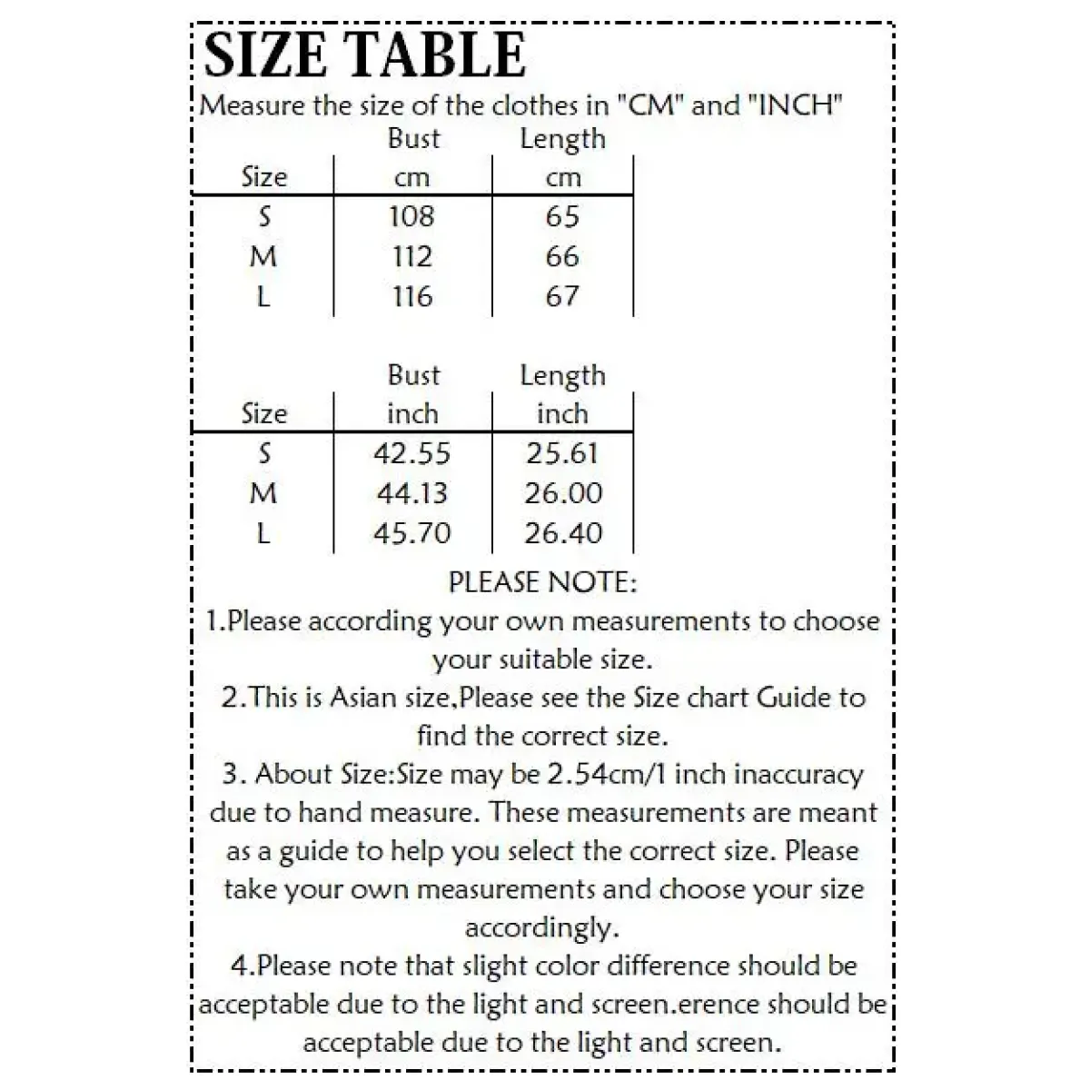 Size | Bust (in) | Length (in) | Sleeve Length (in) |