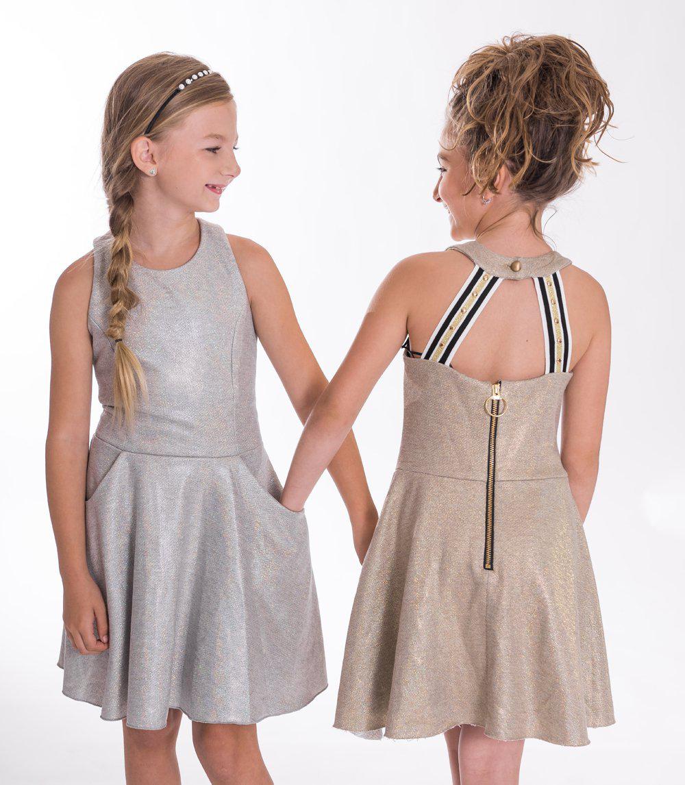 Zoe "Last Dance" foil-print knit dress. Halter neckline with studded racerback. Sleeveless. Side slip pockets. Exposed zipper. Hand Wash in cold water, inside out. Do not tumble Dry. Do not Dry Clean. Body: 80% Cotton, 20% Polyester Lining: 100% Polyester