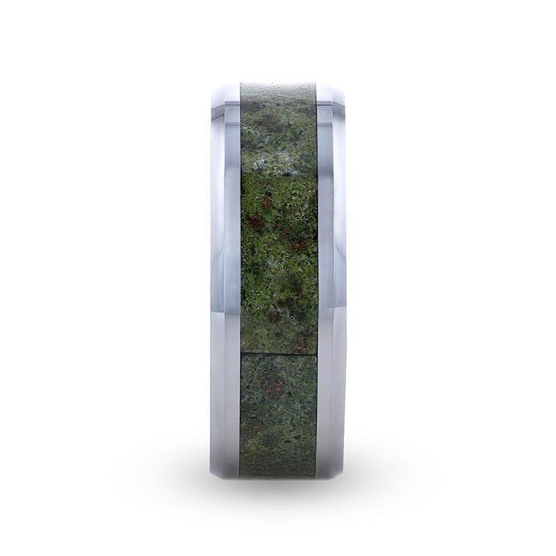 LIBERTY Tungsten Carbide ring with Beveled Edges and Green Copper Conglomerate Inlay - 8mm