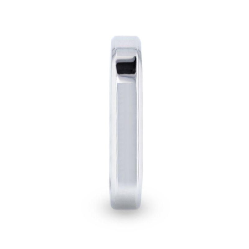 LUCY Sterling Silver Polished Flat-Center Women’s Wedding Band with Beveled Edges - 4mm