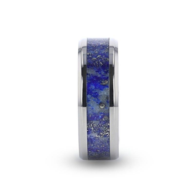 MALONE Men's Titanium Wedding Ring with Lapis Lazuli Inlay and Beveled Edges - 8mm