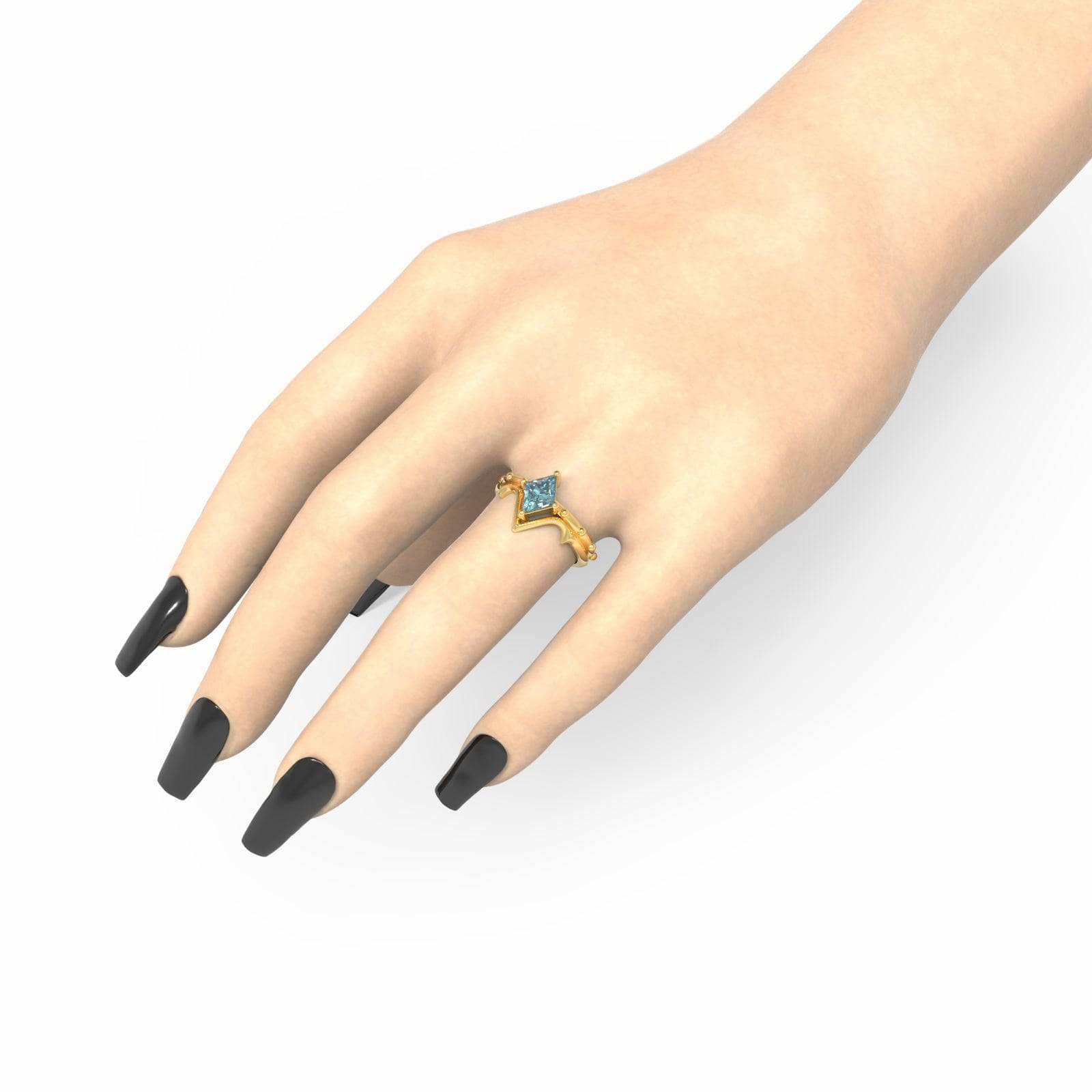 NOTE: All our moissanite are certified and will pass the diamond test. Available in clear, green, blue-green, yellow, grey, and black only. If you choose moissanite and want to change the color of the stone, please indicate the color you need in the instruction box found at checkout. All other colored custom-cut stones can only be made in Diamond Alternative . To upgrade in 9k/10k/14k/18k solid gold, please contact our team.