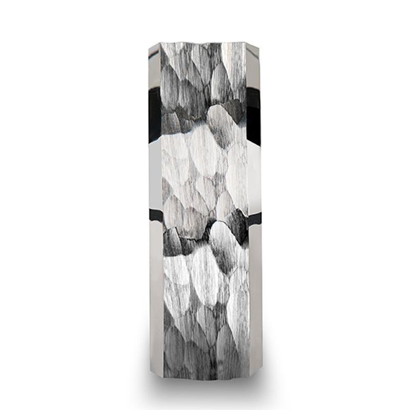 MARTEL White Tungsten Ring with Hammered Finish and Polished Bevels - 10mm