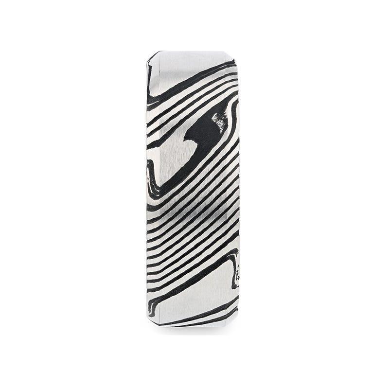 MELVIN Black Damascus Steel Brushed Beveled Men’s Wedding Band with Repeating Artisan Pattern - 6mm & 8mm