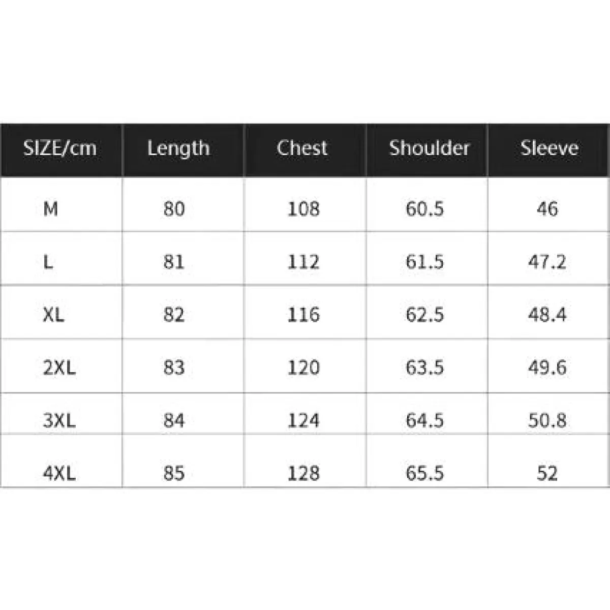 | 4XL | 85 / 33.5 | 128 / 50.4 | 65.5 / 25.8 | 52 / 20.5 |