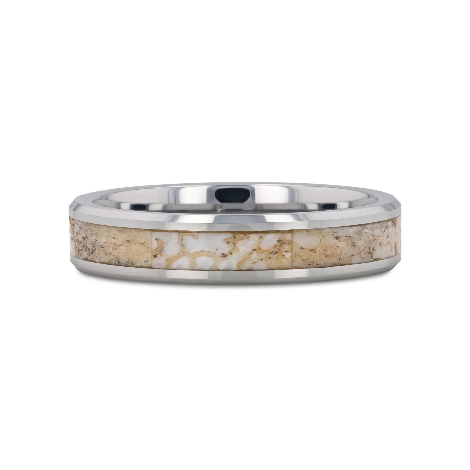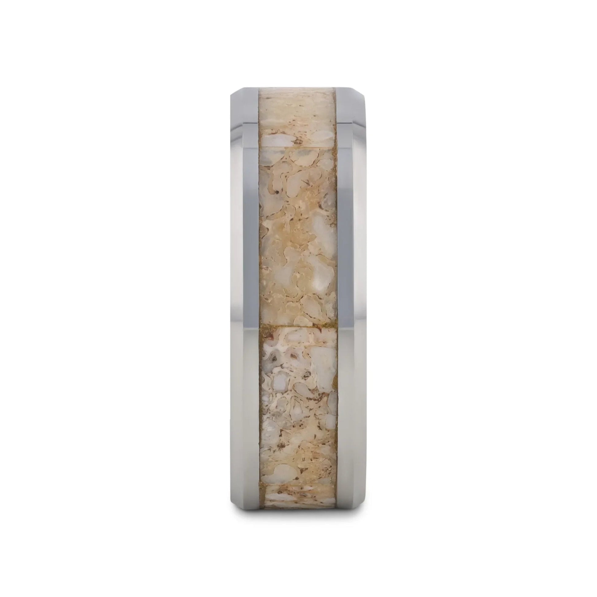MESOZOIC Men’s Tungsten Flat Beveled Wedding Ring with White Dinosaur Bone Inlay - 4mm and 8mm