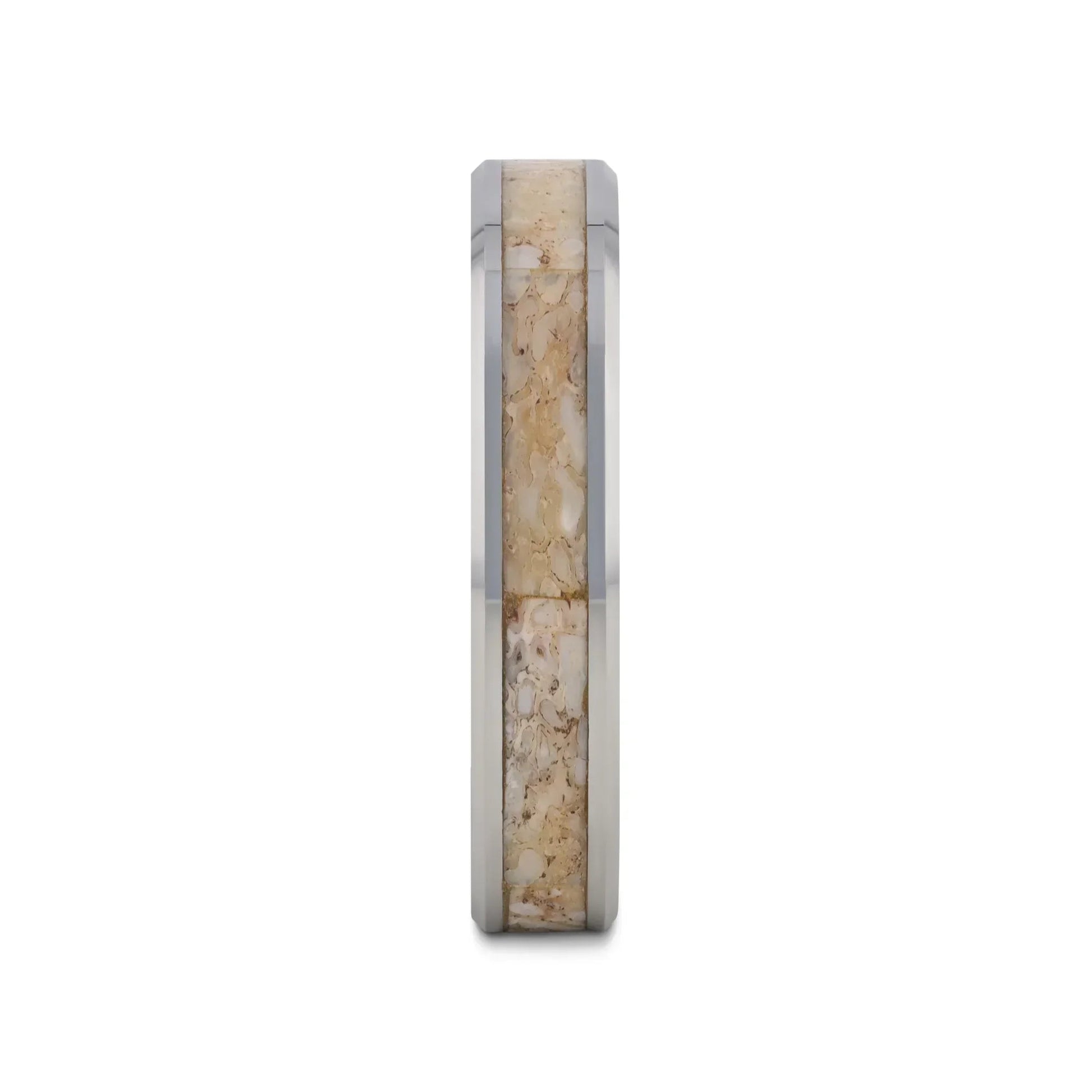 MESOZOIC Men’s Tungsten Flat Beveled Wedding Ring with White Dinosaur Bone Inlay - 4mm or 8mm