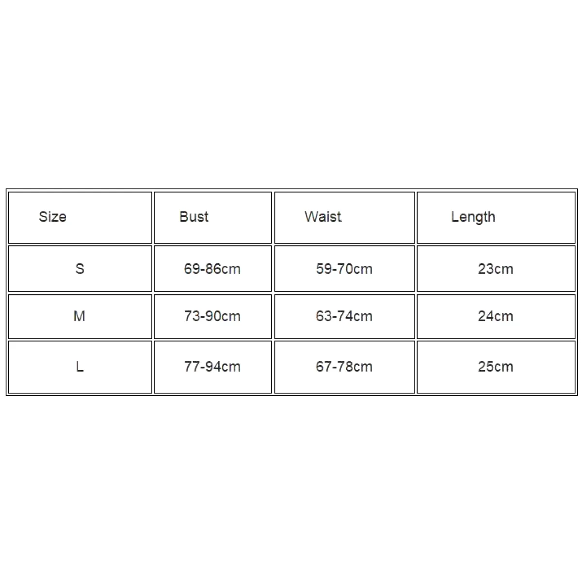 | Size | Bust (in) | Waist (in) | Length (in) |