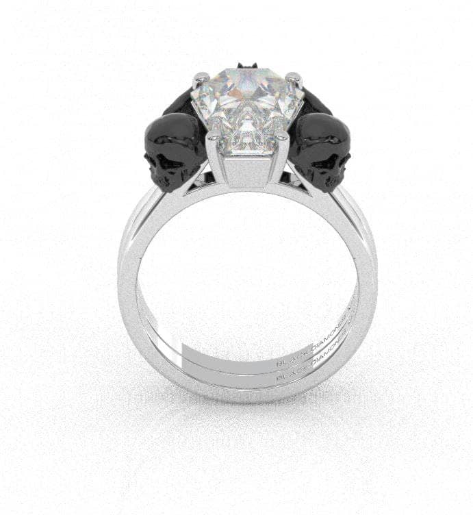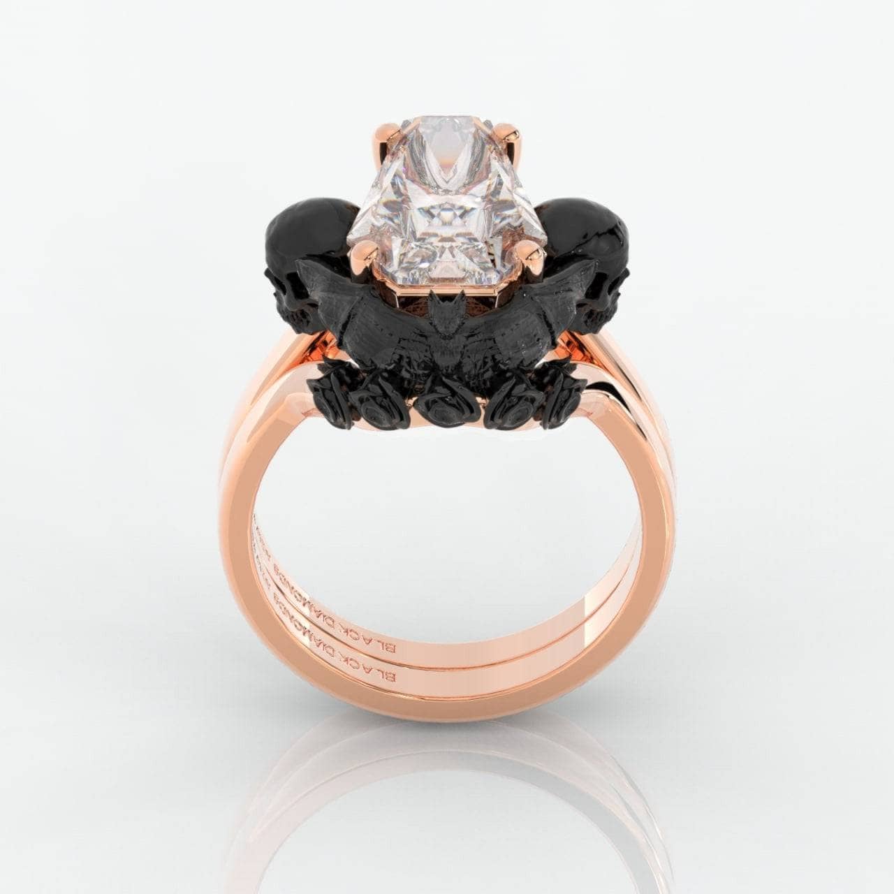 My Ever After Ring with Coffin Cut Diamond with Skulls, Bat and Roses Promise Ring