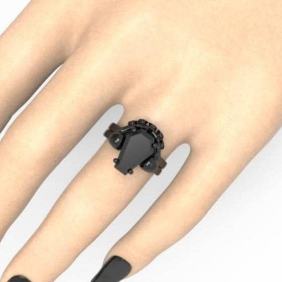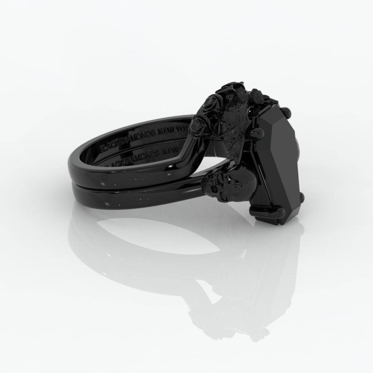 My Ever After Ring - Coffin Cut Diamond with Skulls, Bat, and Roses Promise Ring